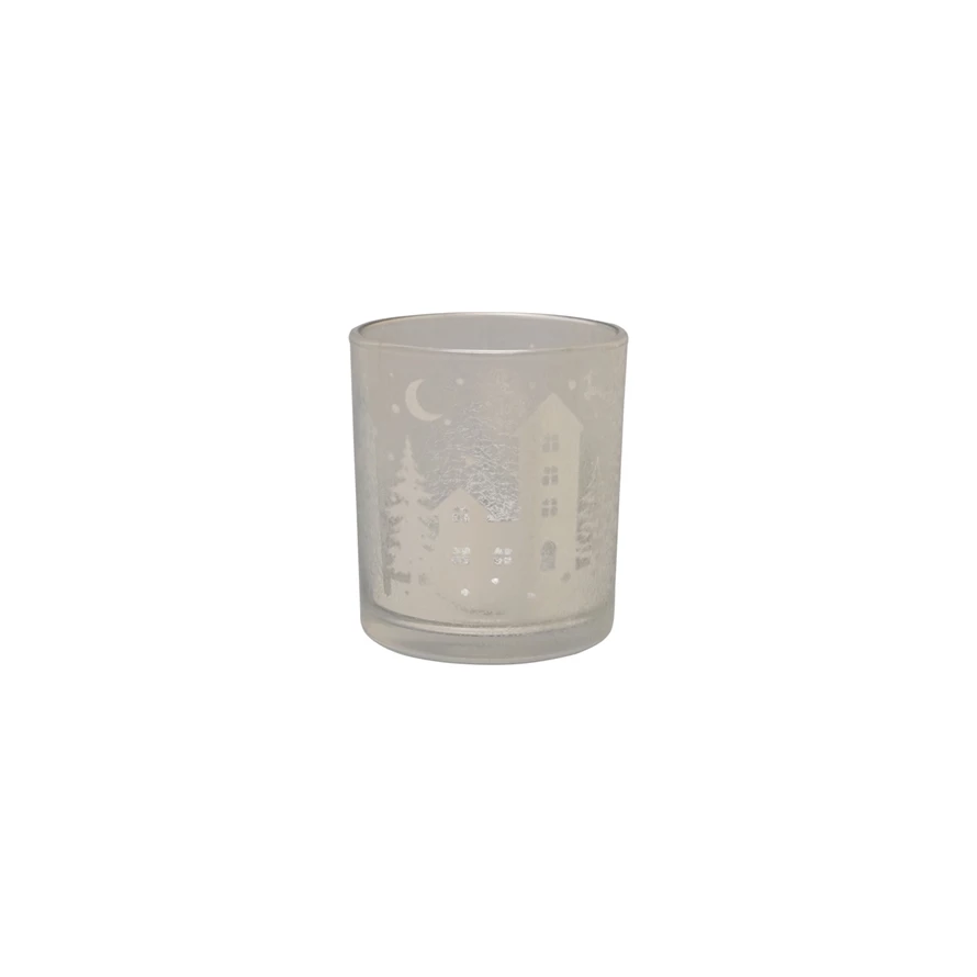 Mercury Glass Tealight/Votive Holder with Laser Etched Scene, Silver Finish
