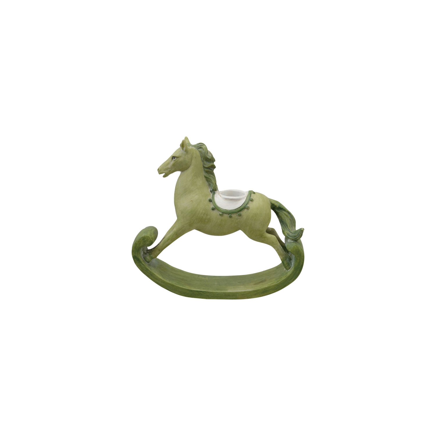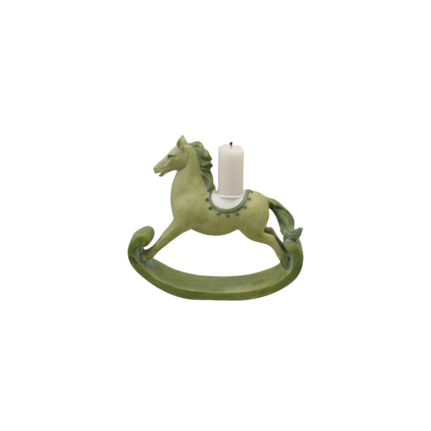 Resin Rocking Horse Shaped Taper Holder, Green & White ©