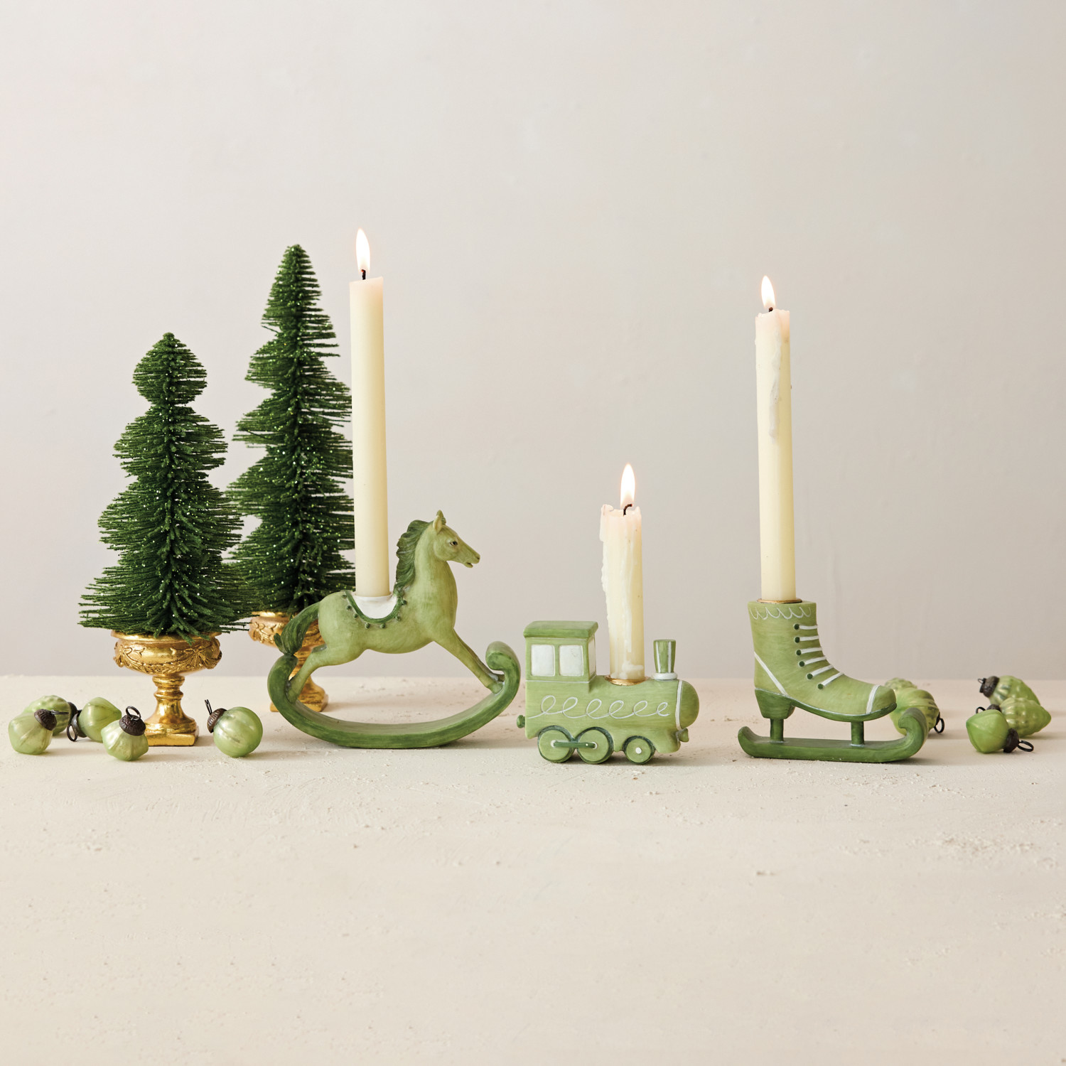 Resin Ice Skate Shaped Taper Holder, Green ©