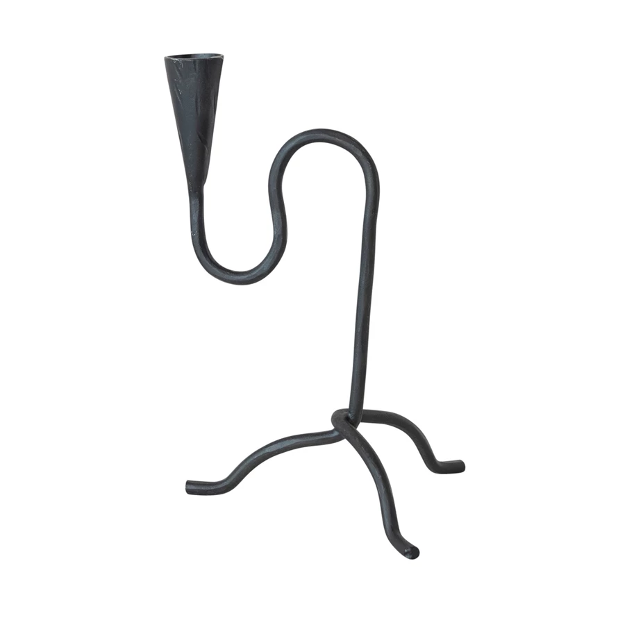 Catalog Name: 6"L x 6"W x 9-1/2"H Hand-Forged Iron Curved Taper Holder, Black