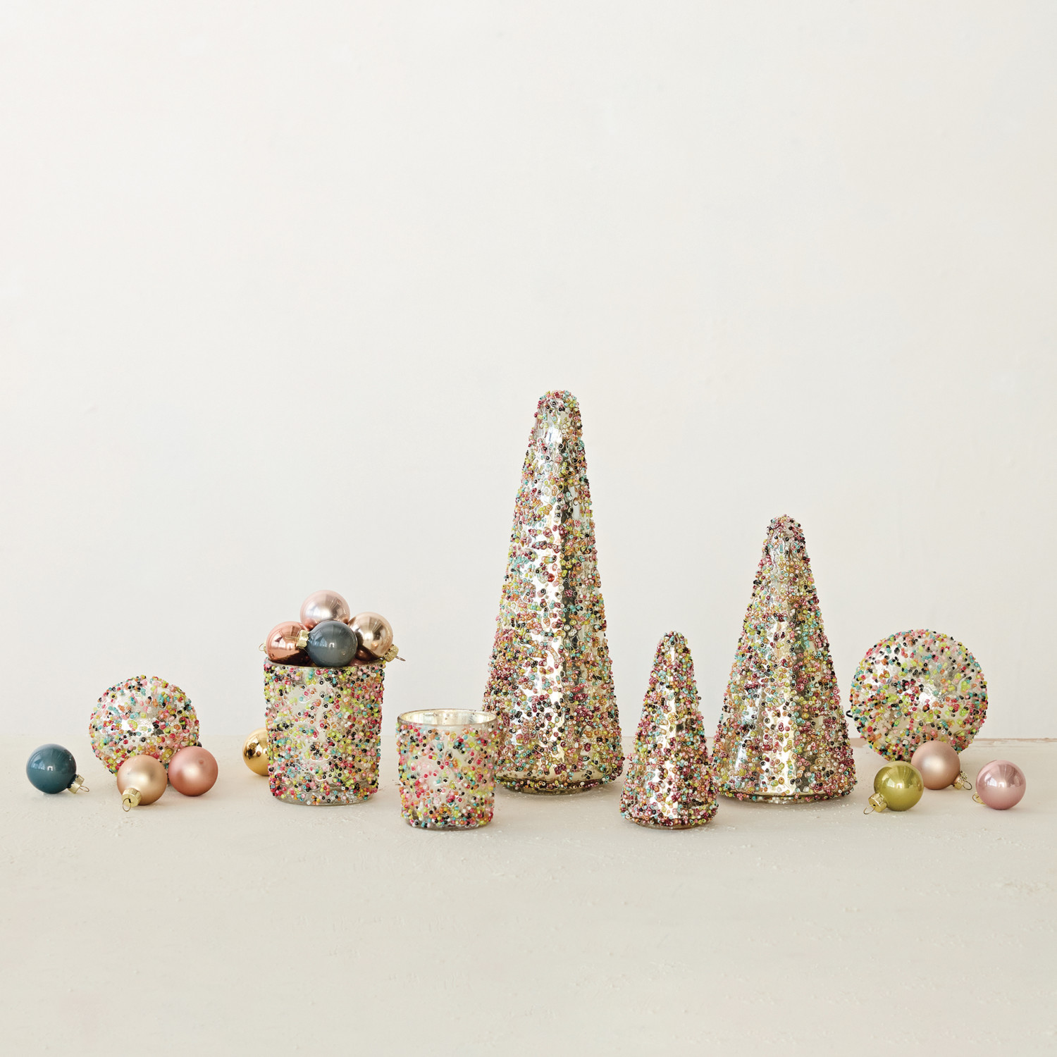 Catalog Name: 2-3/4" Round x 2-3/4"H Mercury Glass Tealight/Votive Holder w/ Confetti Beads, Multi Color