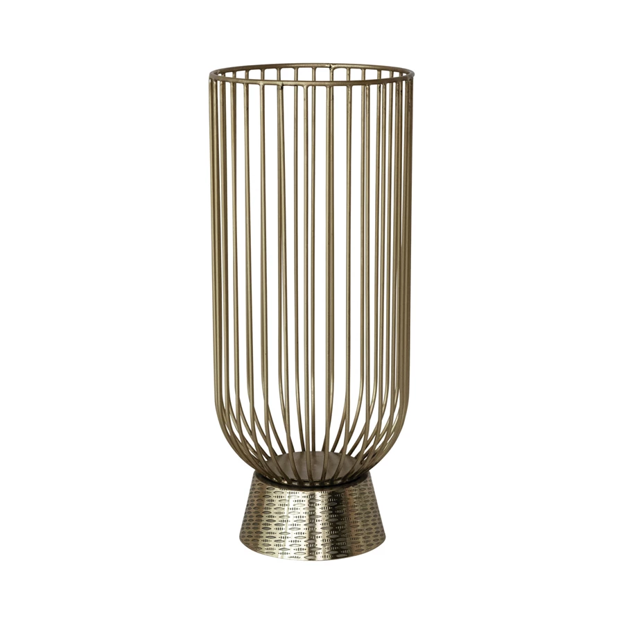 Catalog Name: 6" Round x 14"H Embossed Metal Wire Footed Candle Holder, Gold Finish
