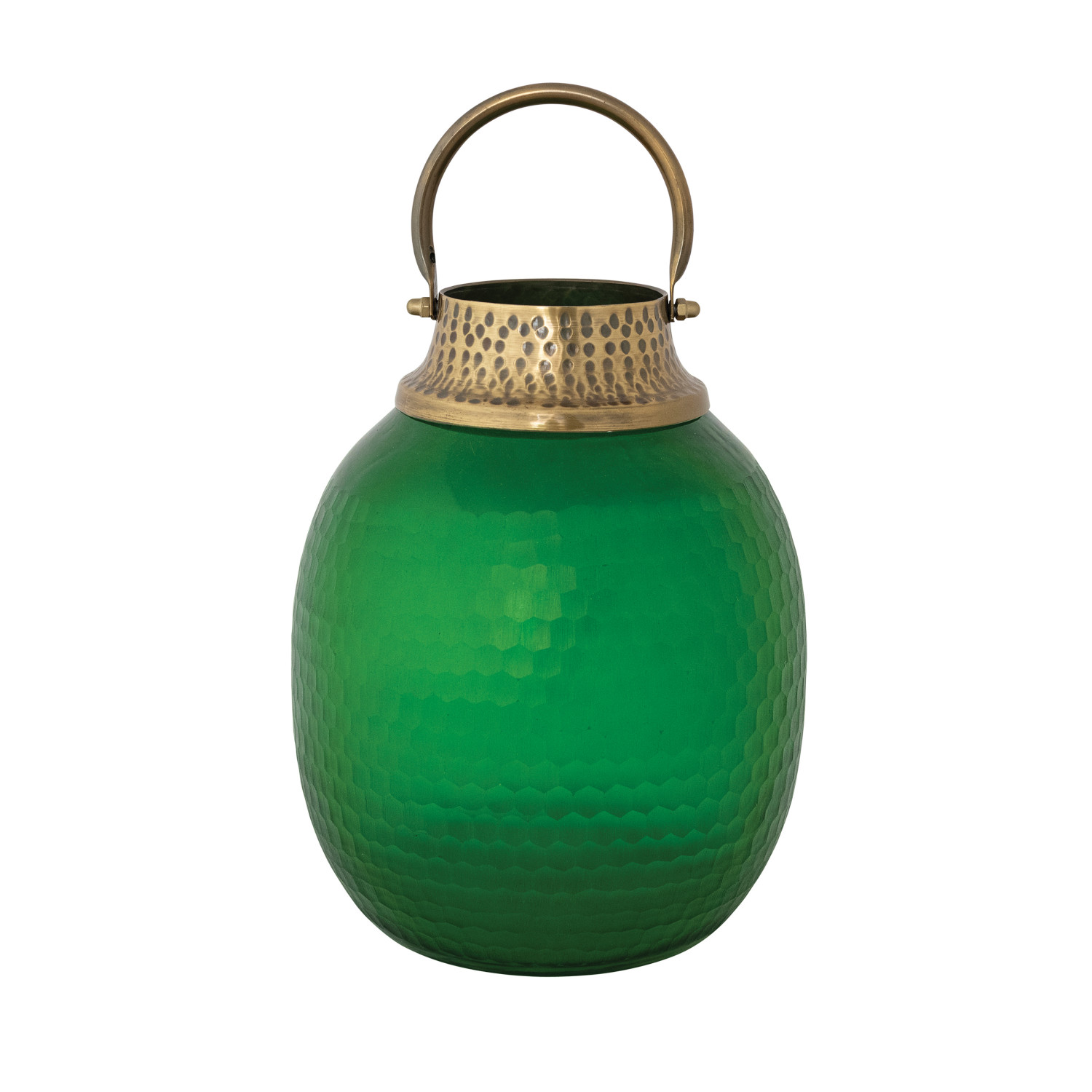 Hammered Glass & Metal Lantern, Green & Antique Gold Finish