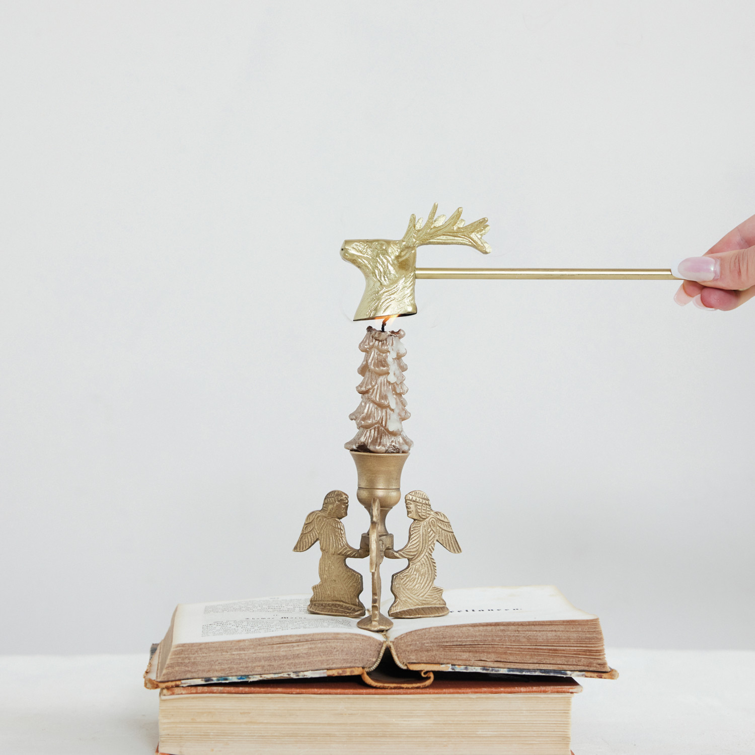 Cast Aluminum Deer Head Shaped Candle Snuffer, Gold Finish