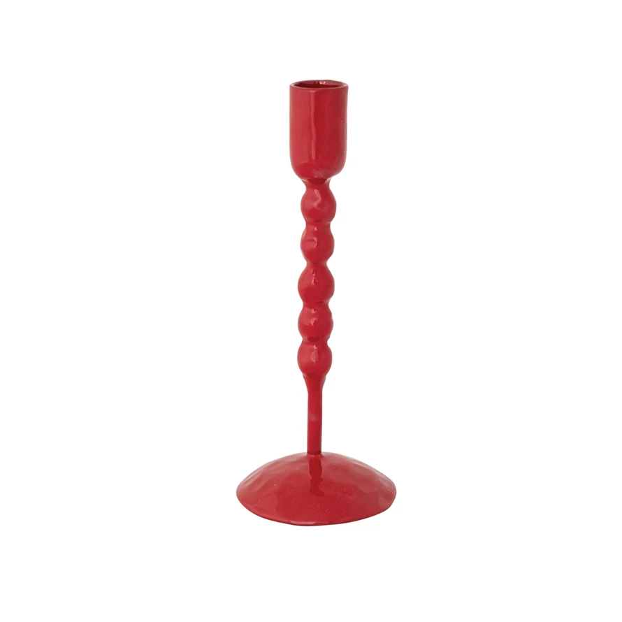 Hand-Forged Enameled Cast Iron Taper Holder, Red