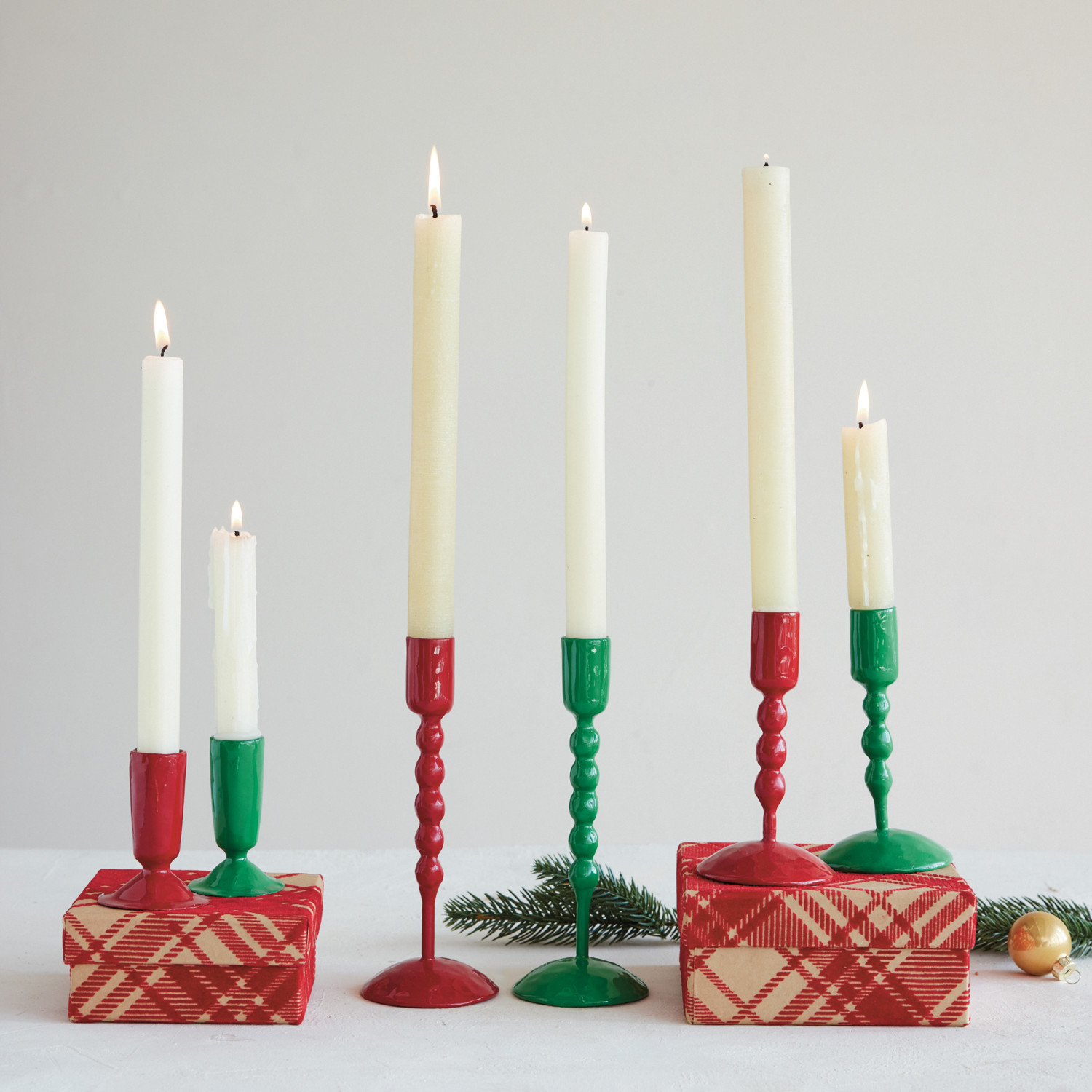 Catalog Name: 2-3/4" Round x 7-1/2"H Hand-Forged Enameled Cast Iron Taper Holder, Red