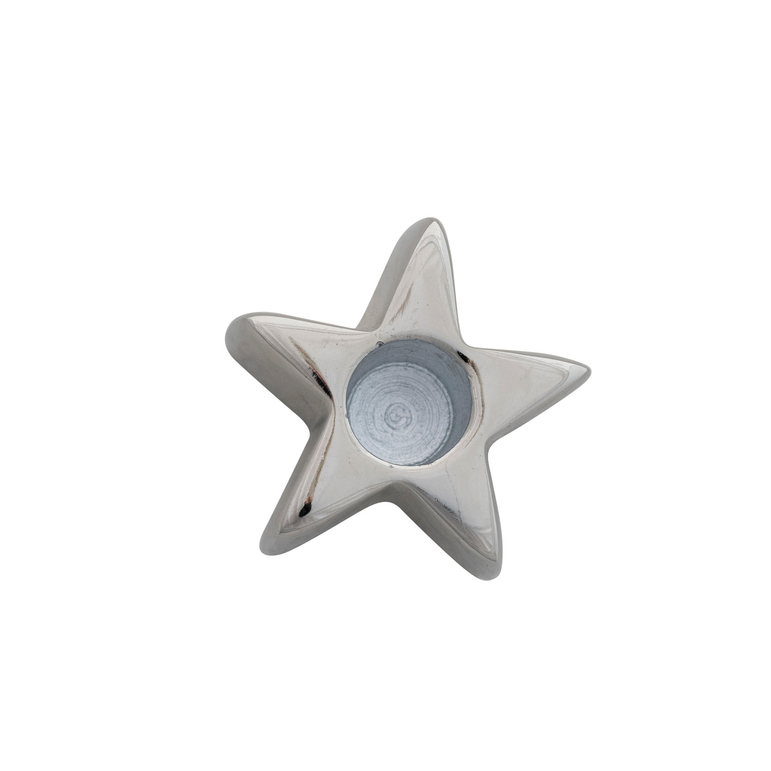 Catalog Name: 2-1/2" Round x 1-1/2"H Cast Aluminum Star Shaped Taper Holder, Nickel Finish