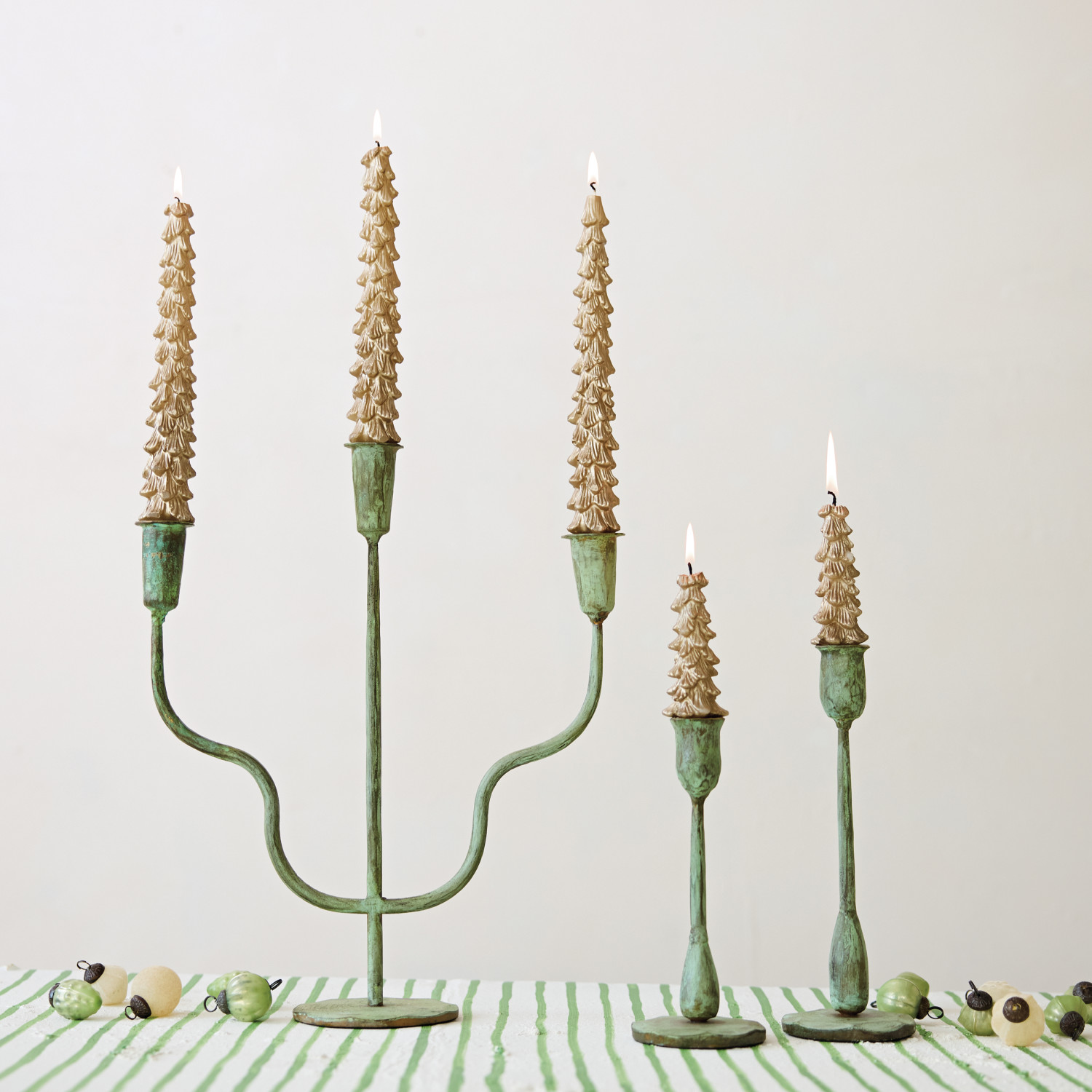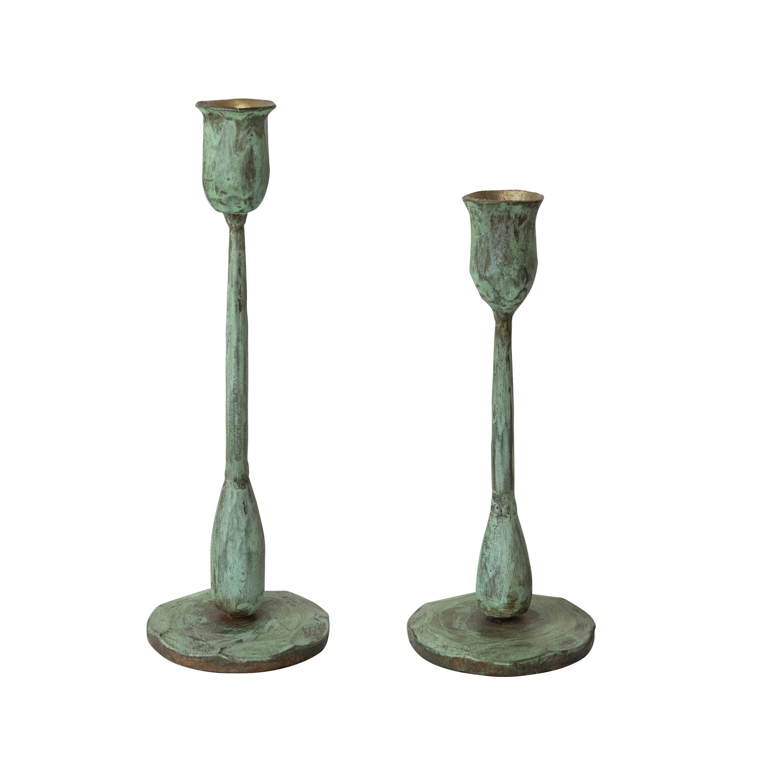 Hand-Forged Metal Taper Holders, Verdigris Finish, Set of 2