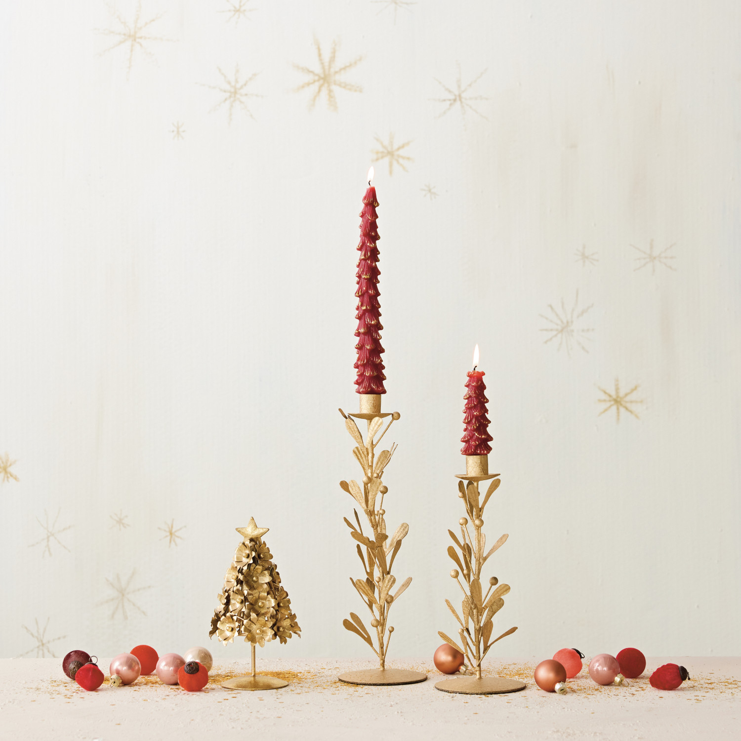 Handmade Metal & Acrylic Bead Mistletoe Taper Holder, Distressed Antique Gold Finish