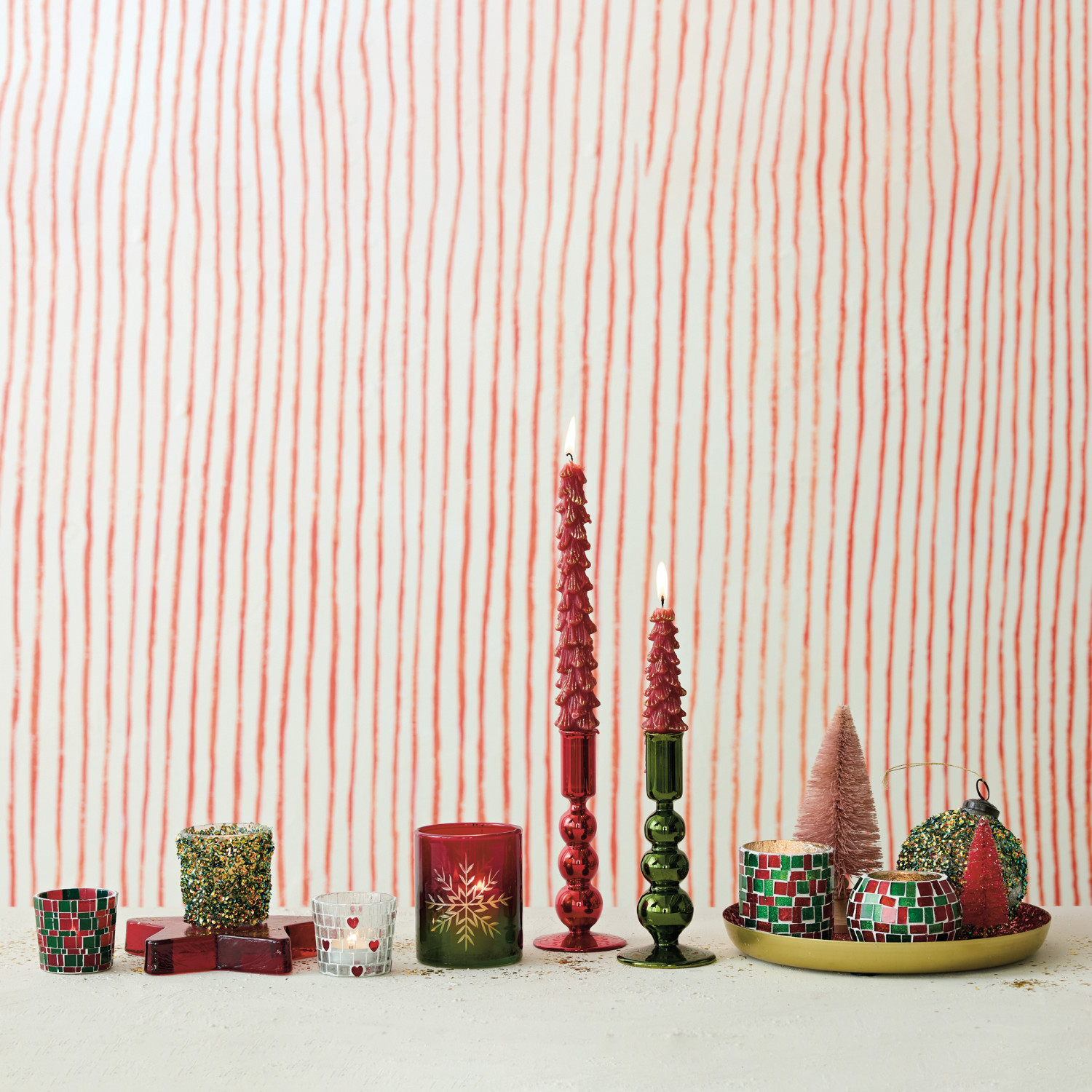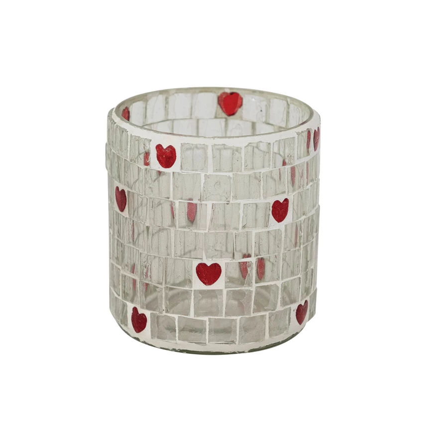 Glass Mosaic Tealight/Votive Holder with Hearts, Red & White