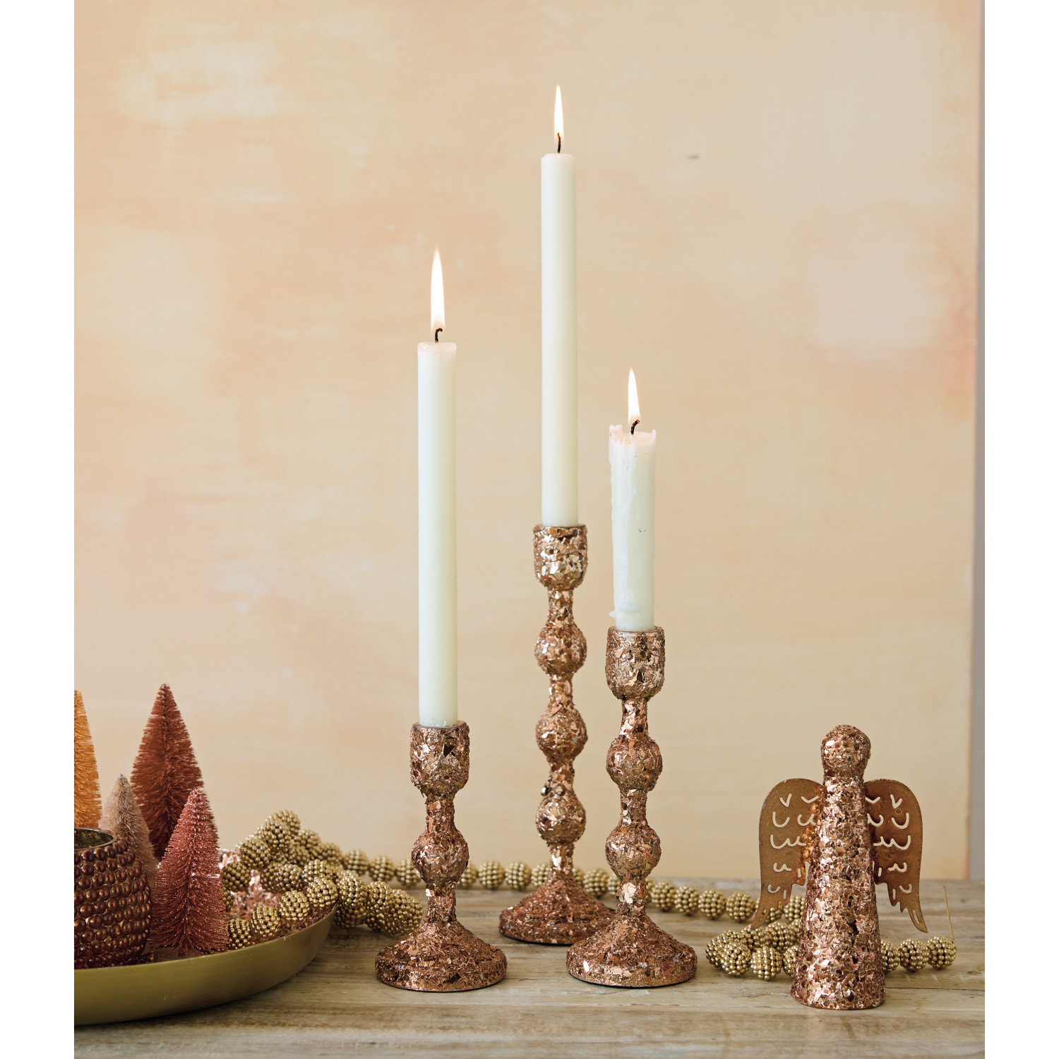 Catalog Name: 3" Round x 5-3/4"H Metal Taper Holder w/ Mica Flakes, Copper Finish