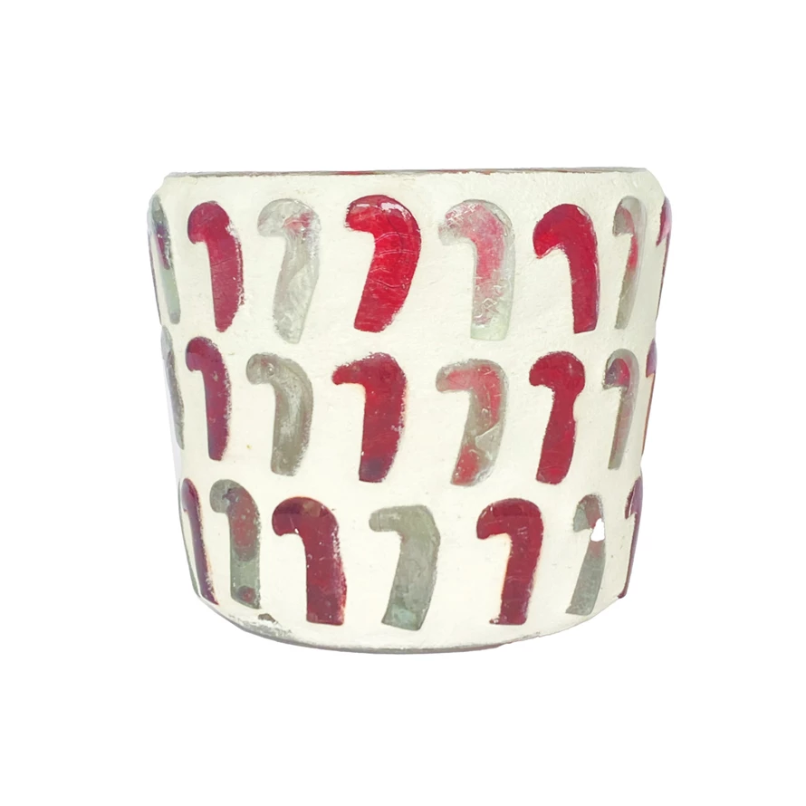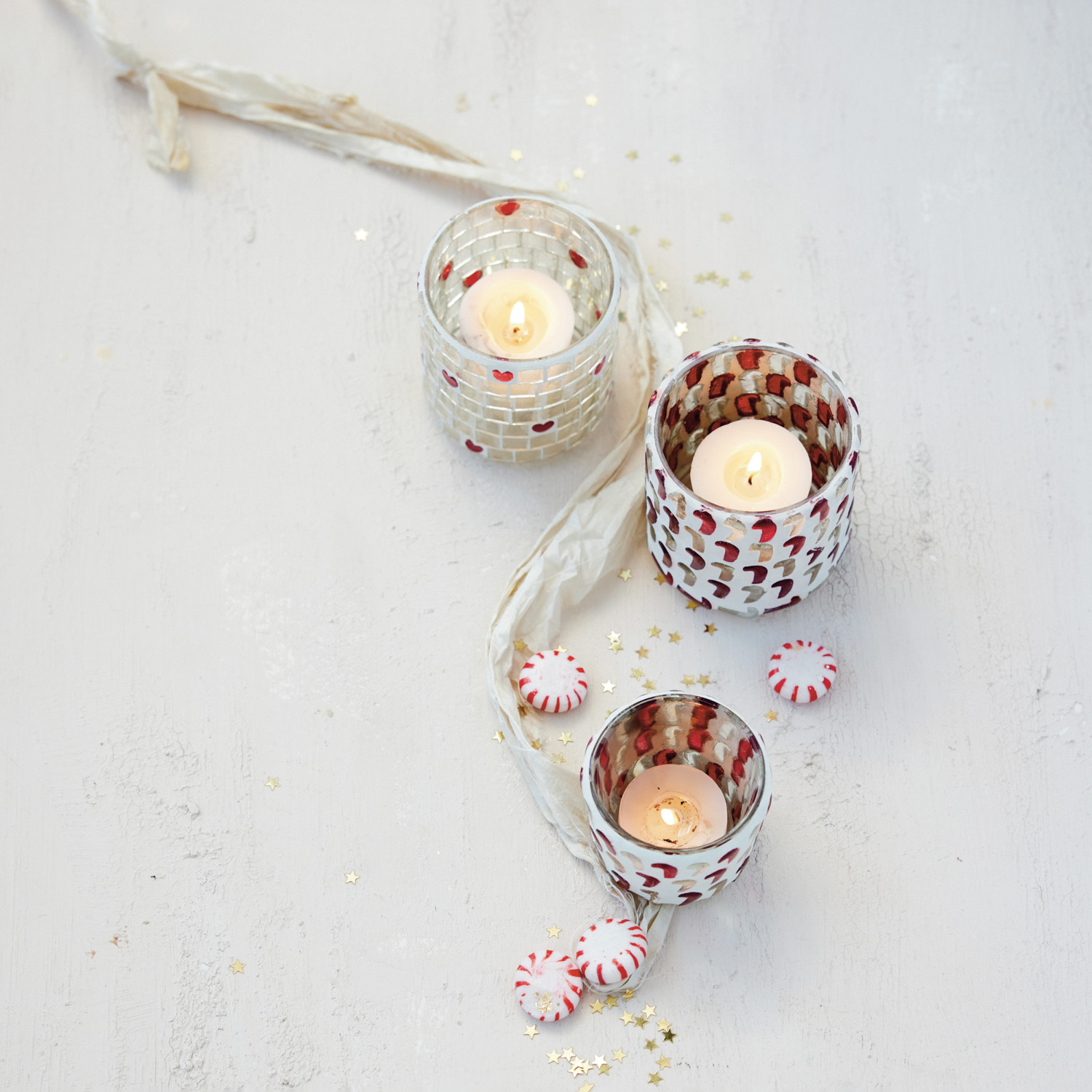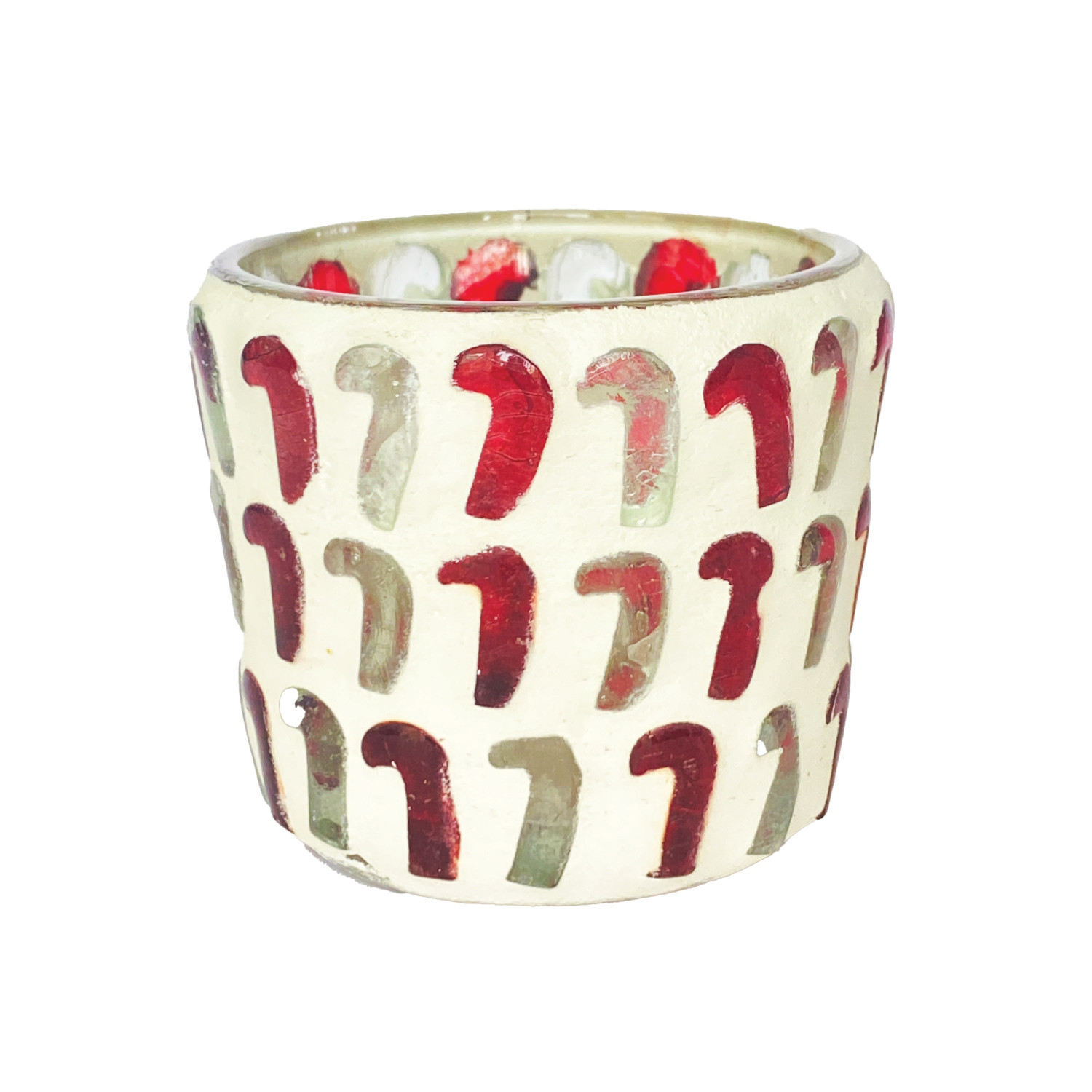 Glass Mosaic Candy Cane Tealight/Votive Holder, Red & White