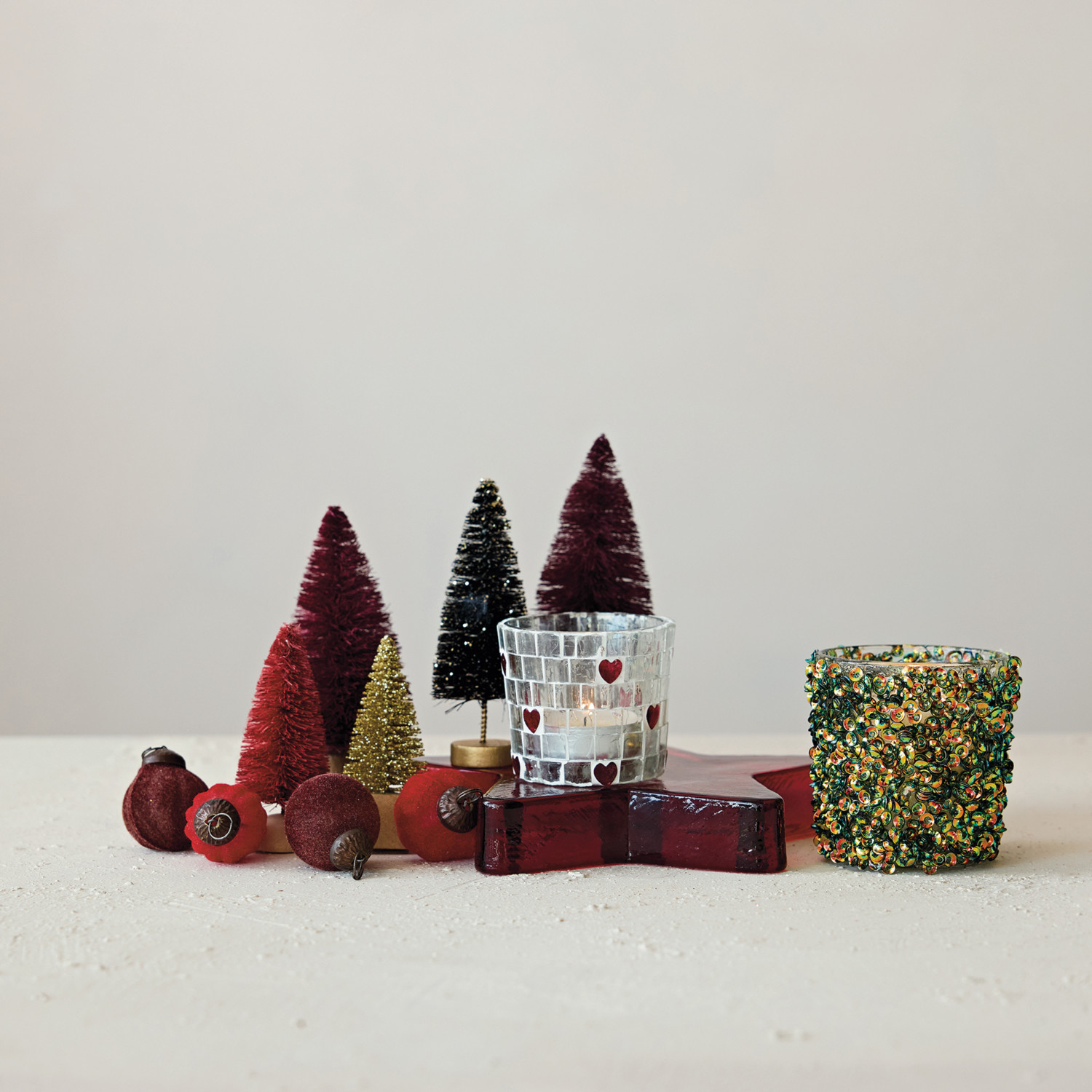 Catalog Name: 2-1/2" Round x 2-3/4"H Handmade Glass Tealight/Votive Holder w/ Iridescent Sequins, Multi Color