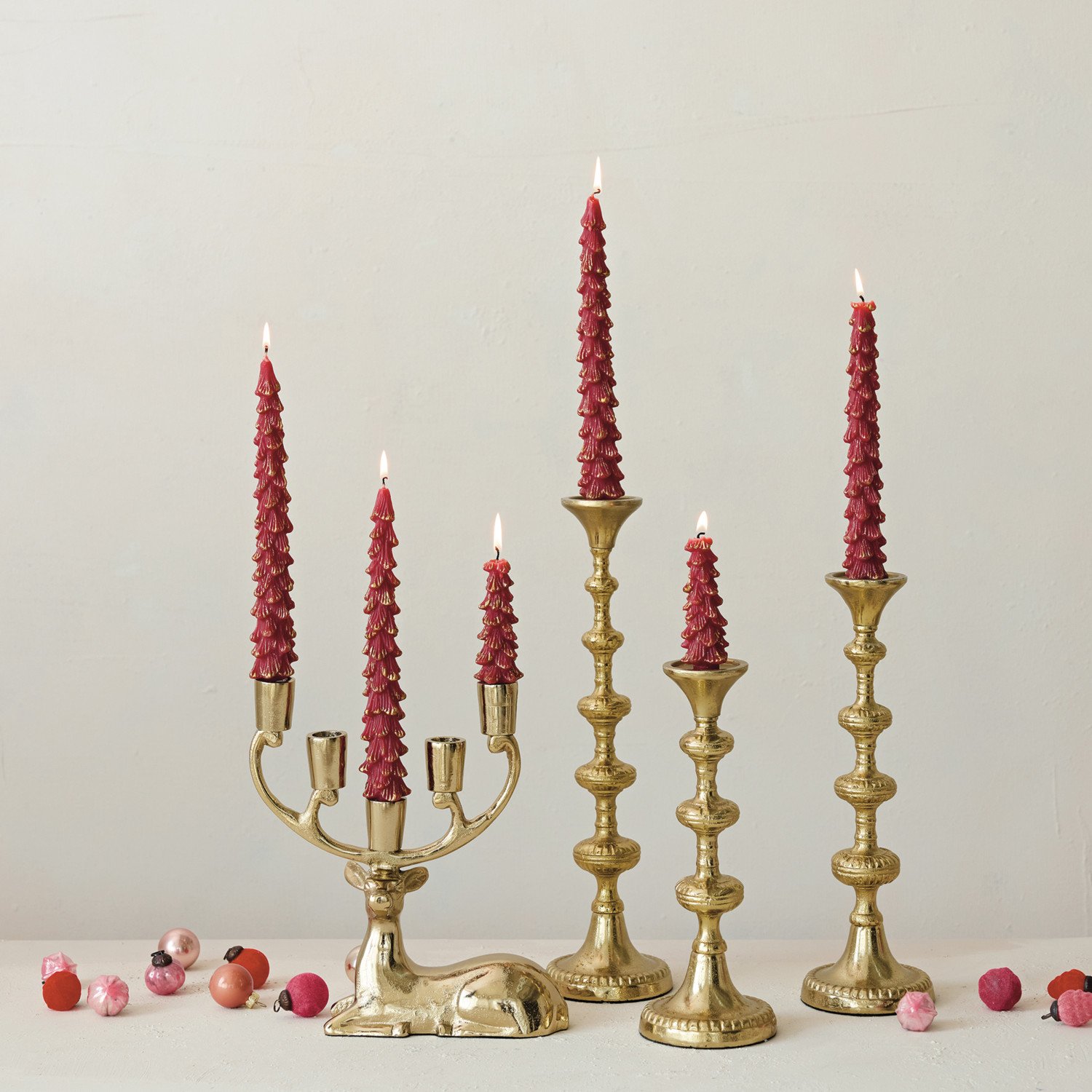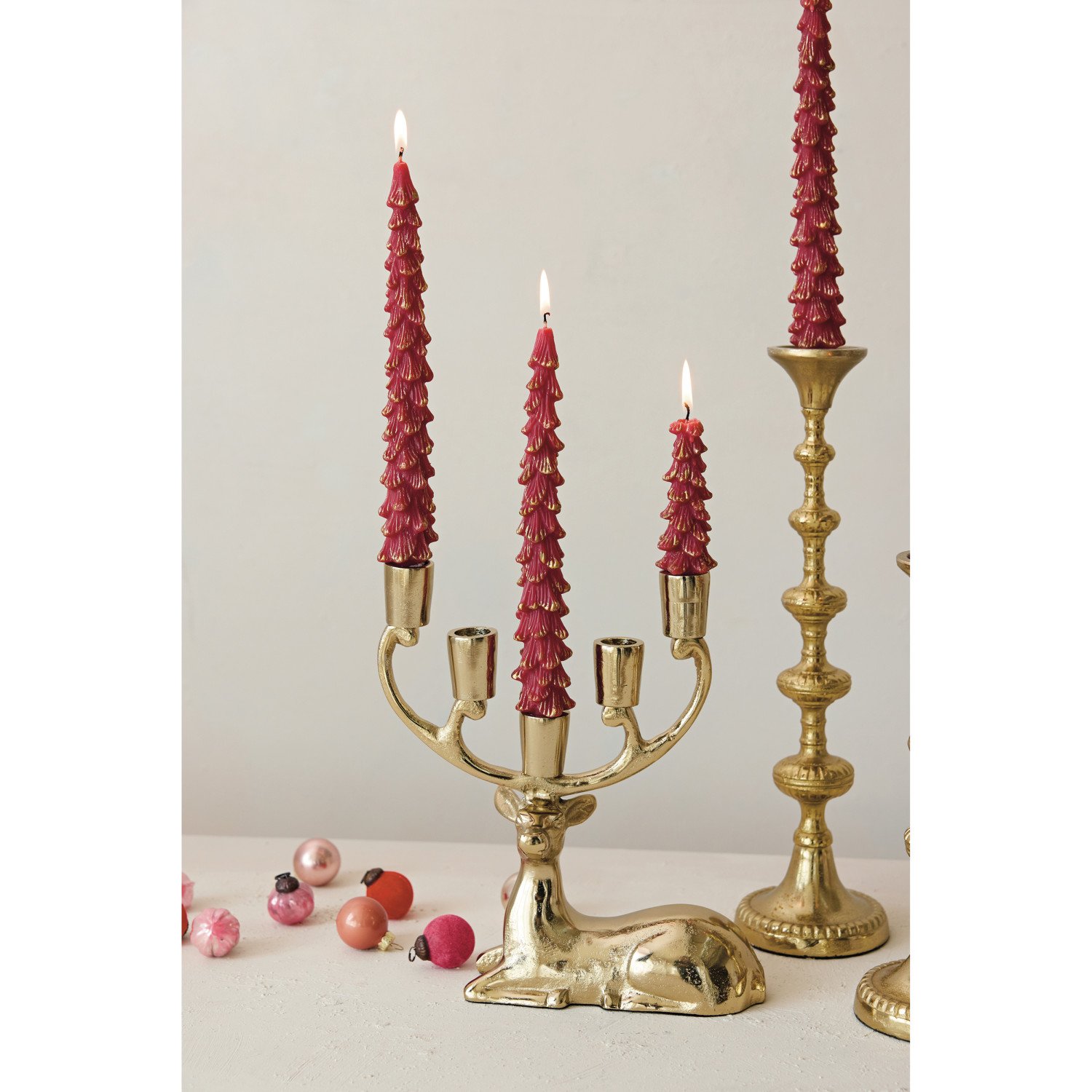Cast Aluminum Deer Candelabra, Gold Finish (Holds 5 Tapers)
