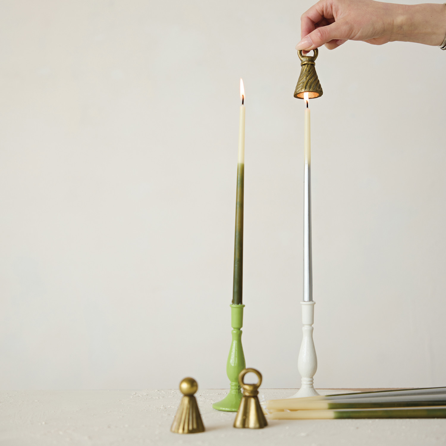 Cast Aluminum Bell Shaped Candle Snuffer, Antique Gold Finish, 3 Styles