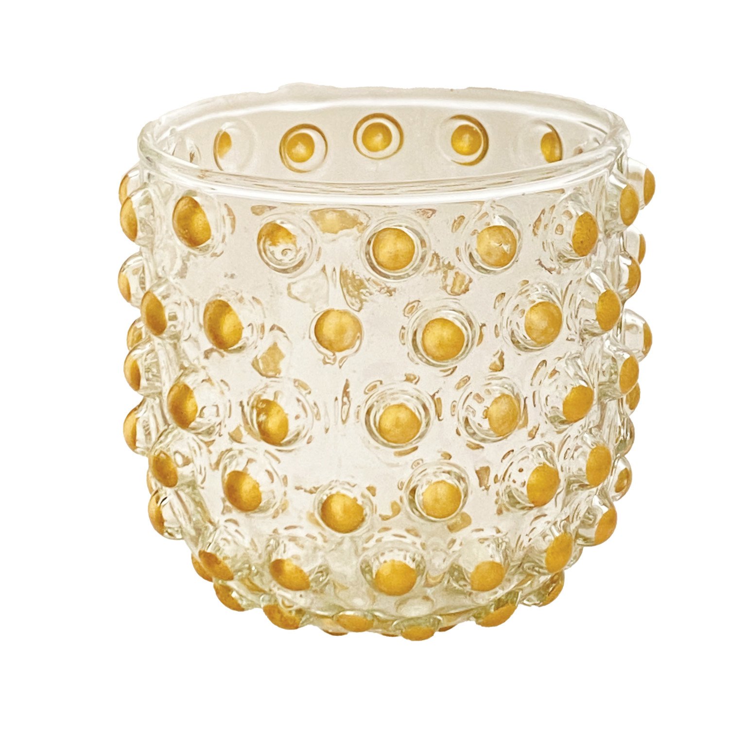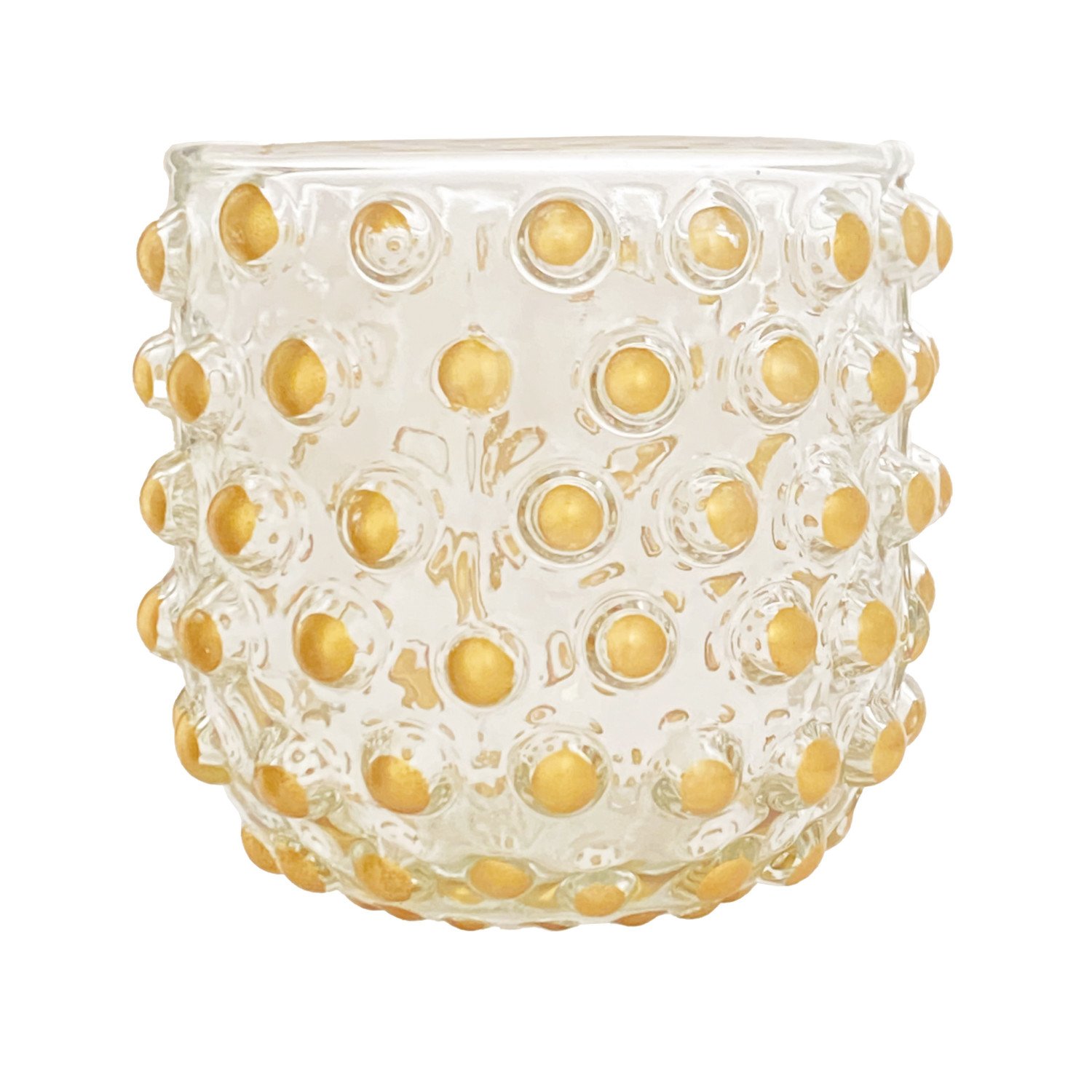 Glass Tealight/Votive Holder with Gold Finish Hobnails