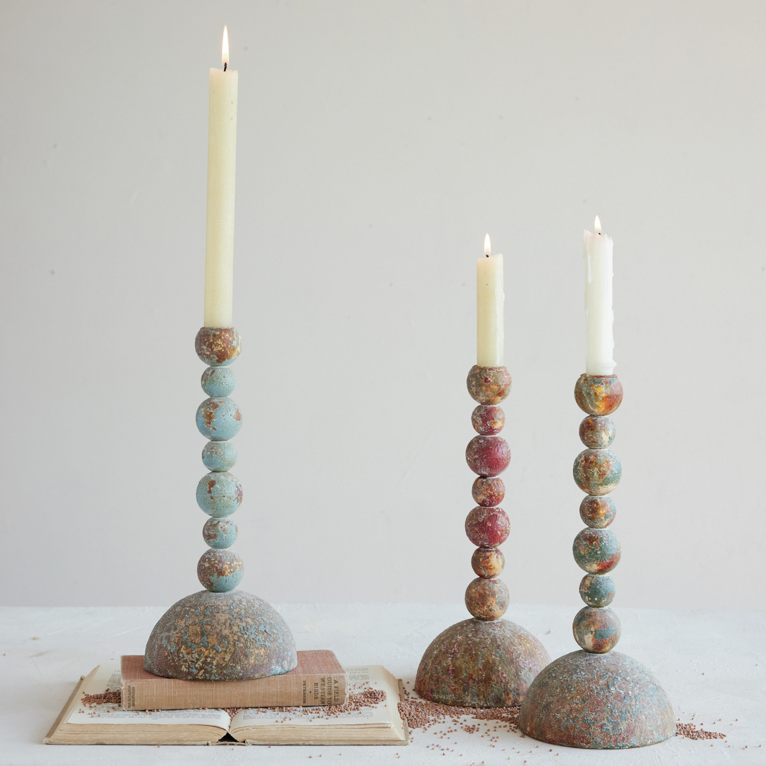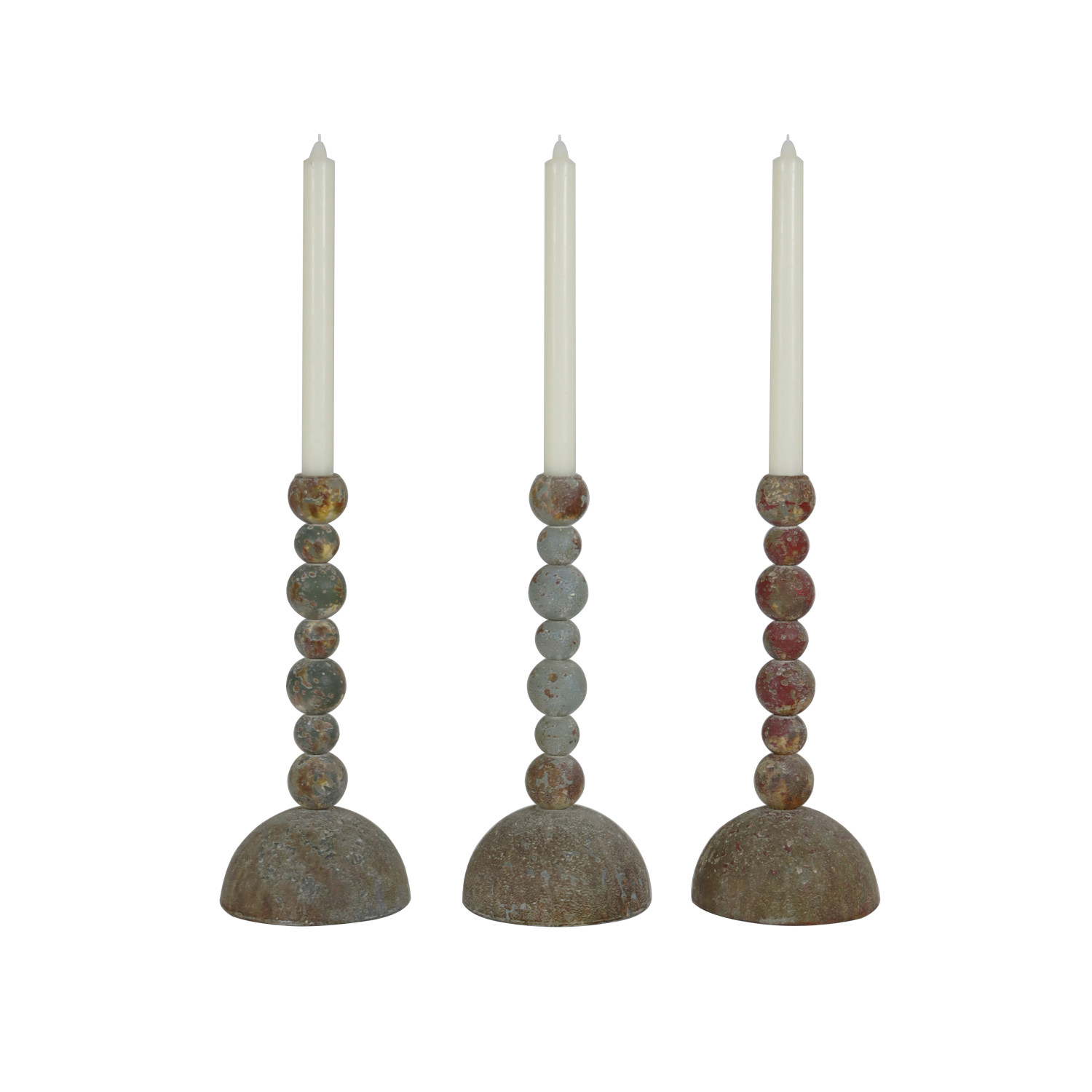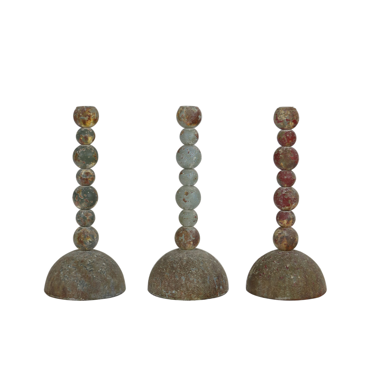 Metal Stacked Ball Taper Holder, Heavily Distressed Finish, 3 Colors