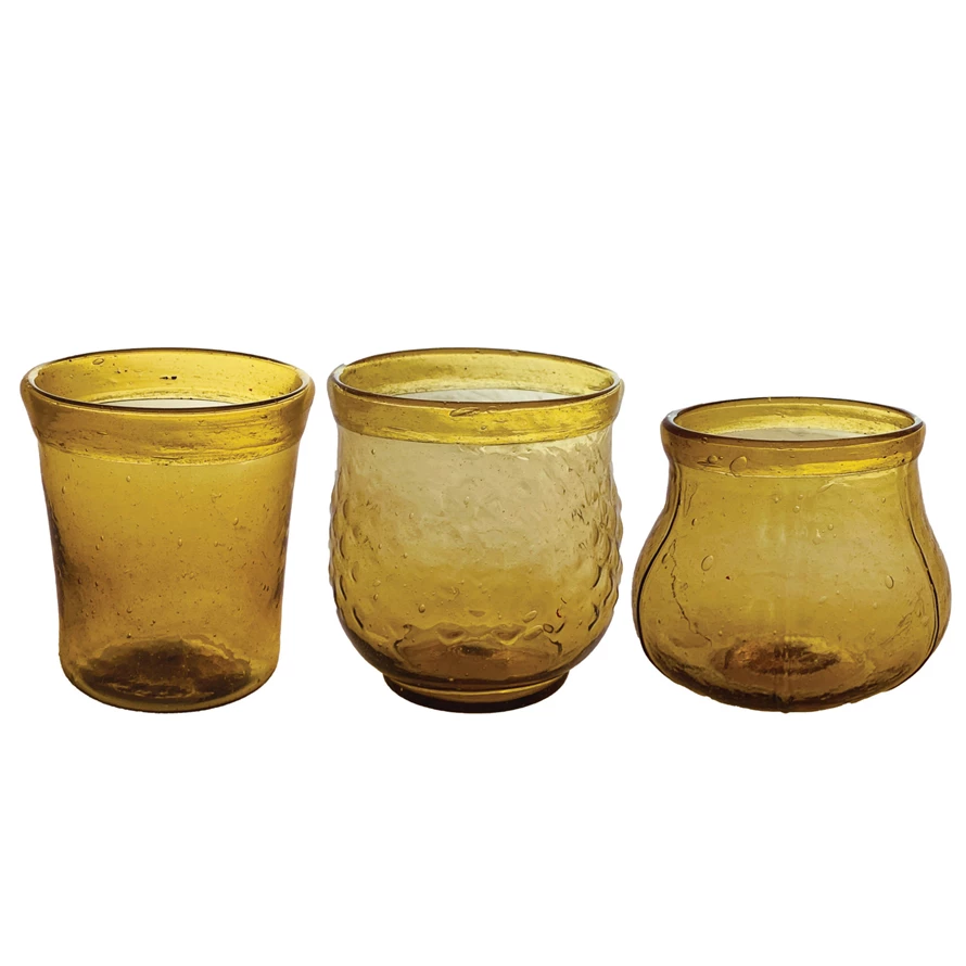 Round Hand-Blown Glass Tealight/Votive Holder, Amber Color, 3 Styles
