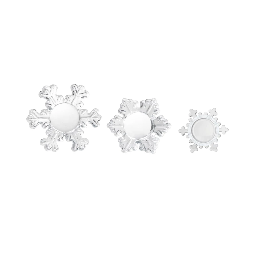 Catalog Name: 4" Round, 3" Round & 2-1/2" Round Glass Snowflake Shaped Tealight Holders, Set of 3