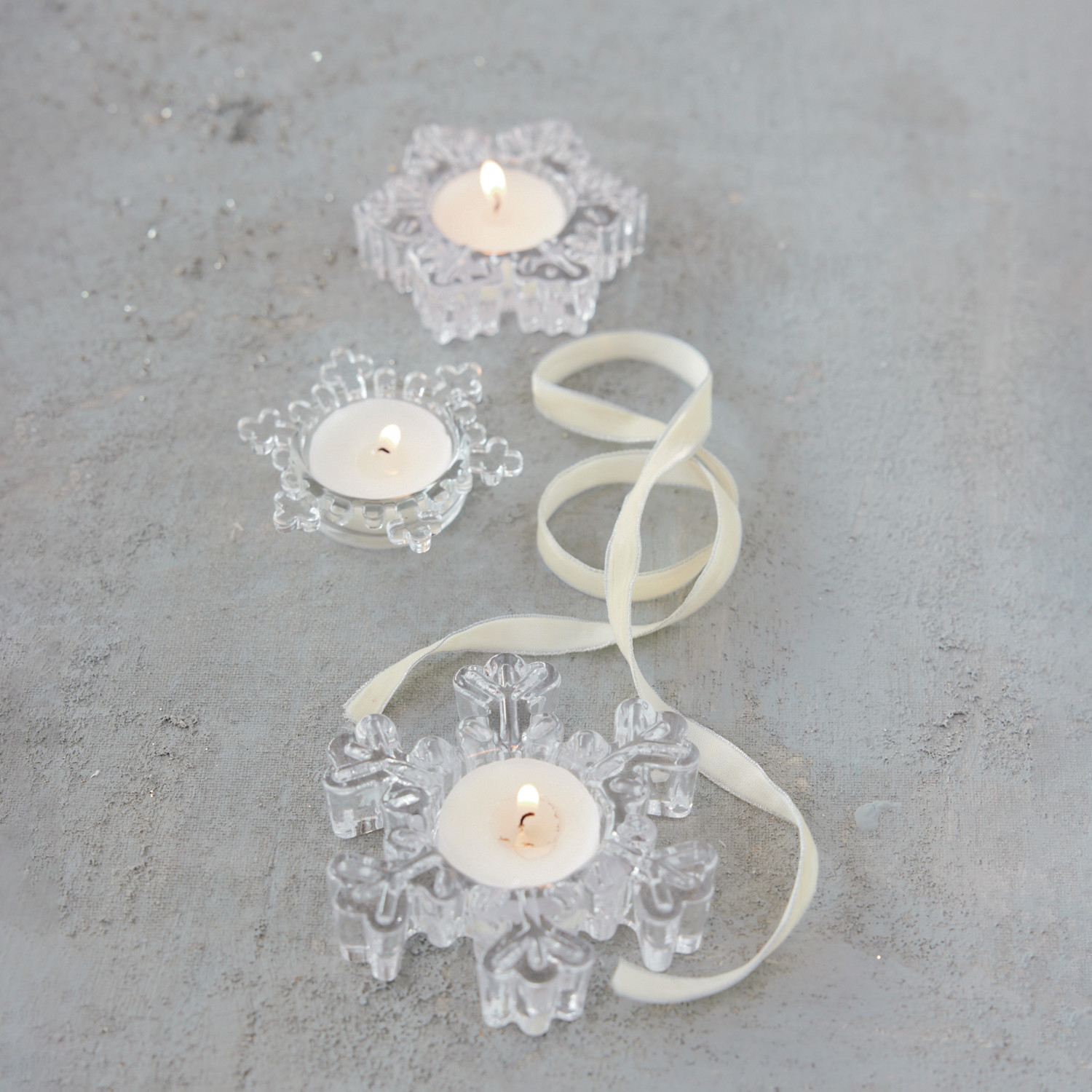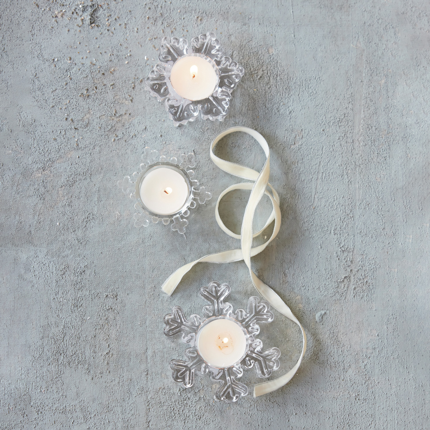 Round Glass Snowflake Shaped Tealight Holders, Set of 3