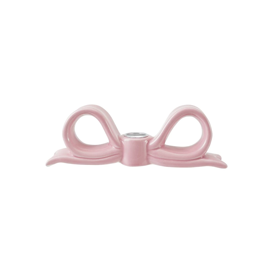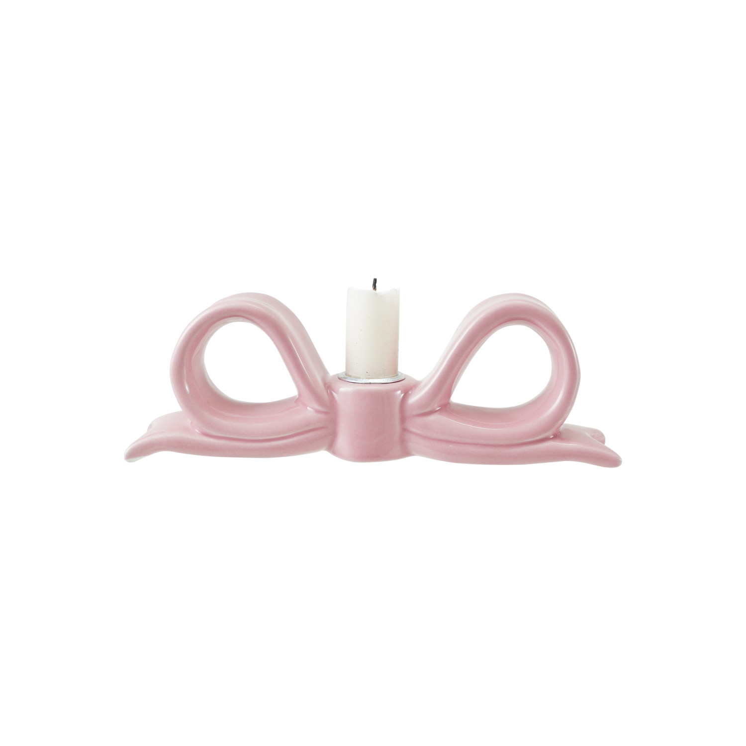Catalog Name: 8-1/4"L x 2-3/4"H Ceramic Bow Shaped Taper Holder, Pink