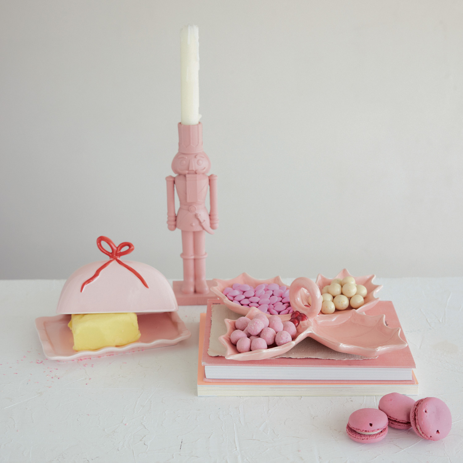 Resin Nutcracker Shaped Taper Holder, Pink