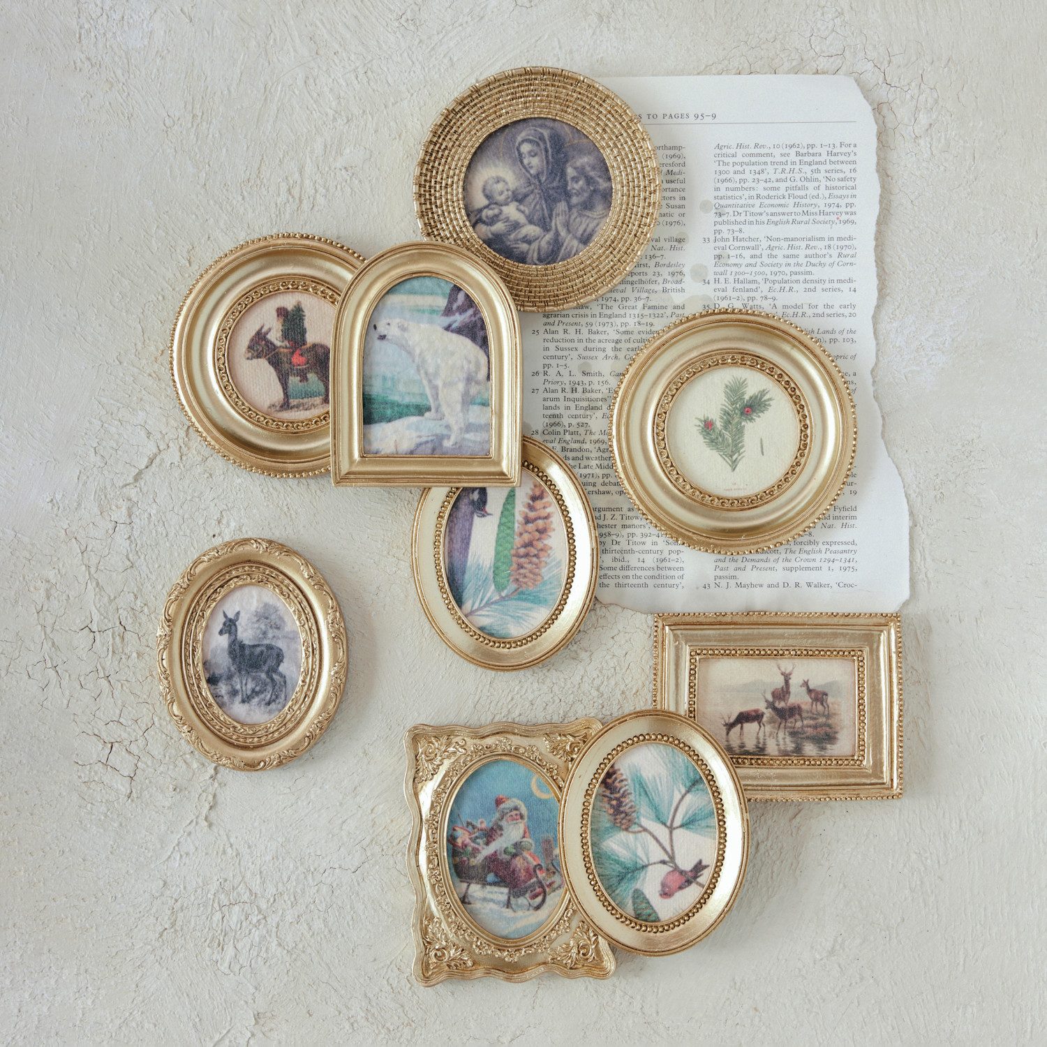 Resin Mini Framed Vintage Seasonal Art Magnet, Gold Finish, 9 Styles