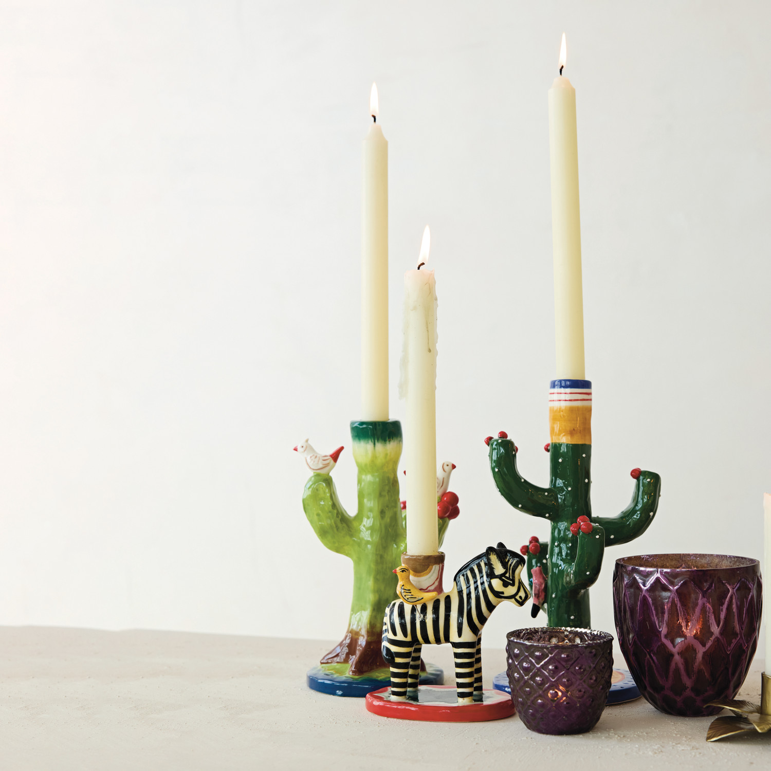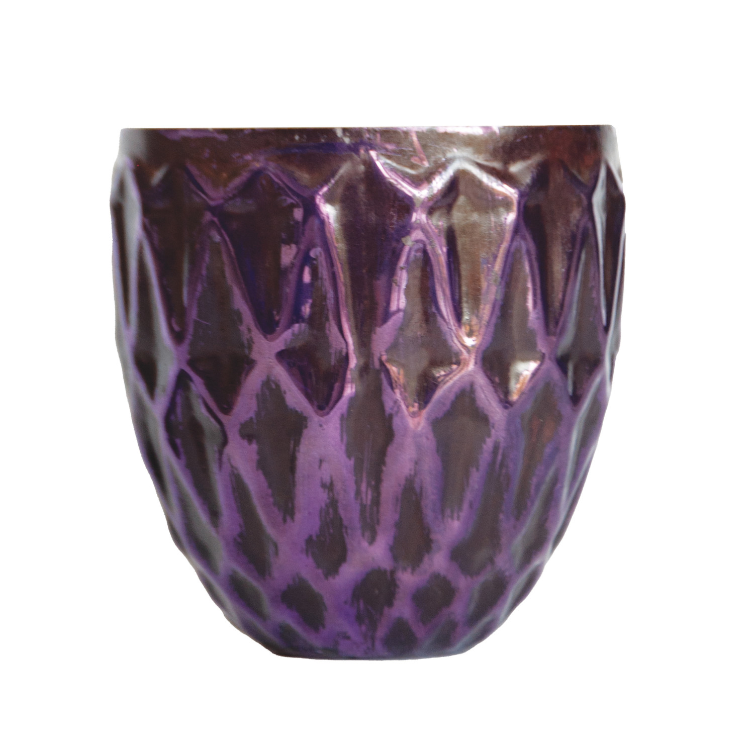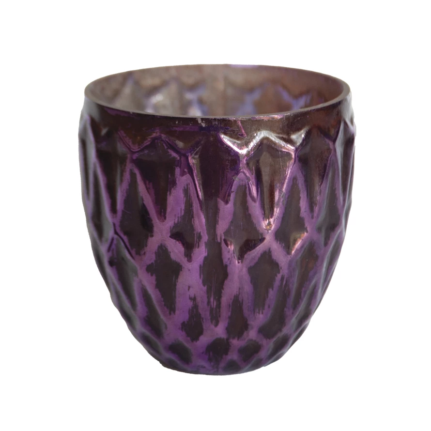Hand-Blown Embossed Mercury Glass Tealight/Votive Holder, Plum Color