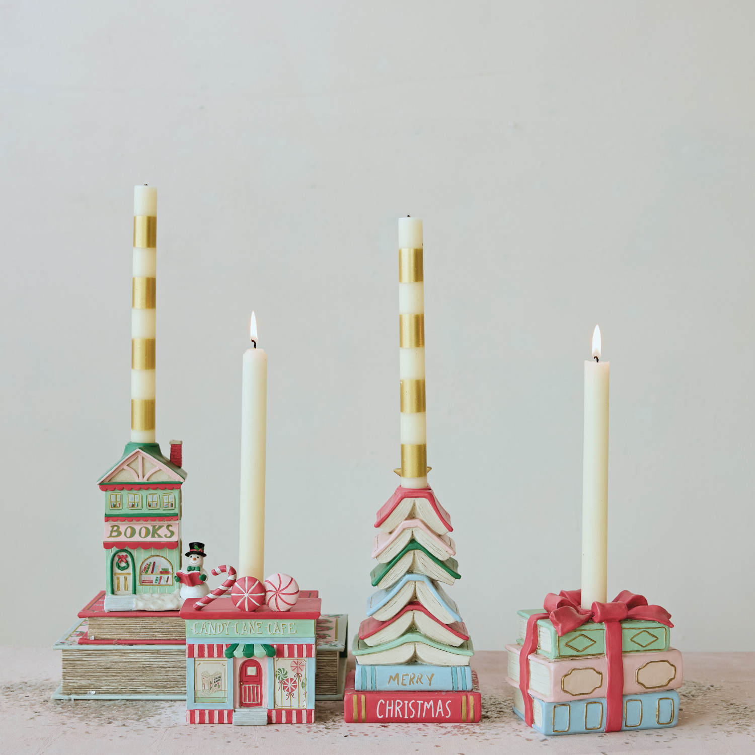 Resin Stacked Books Shaped Taper Holder with Bow ©