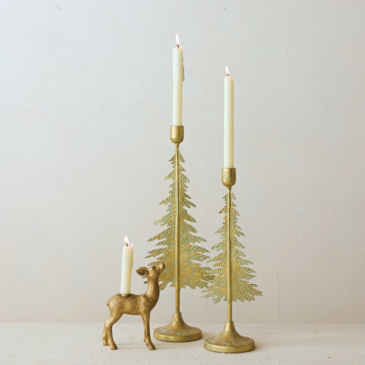 Metal Tree Shaped Taper Holder, Verdigris Finish