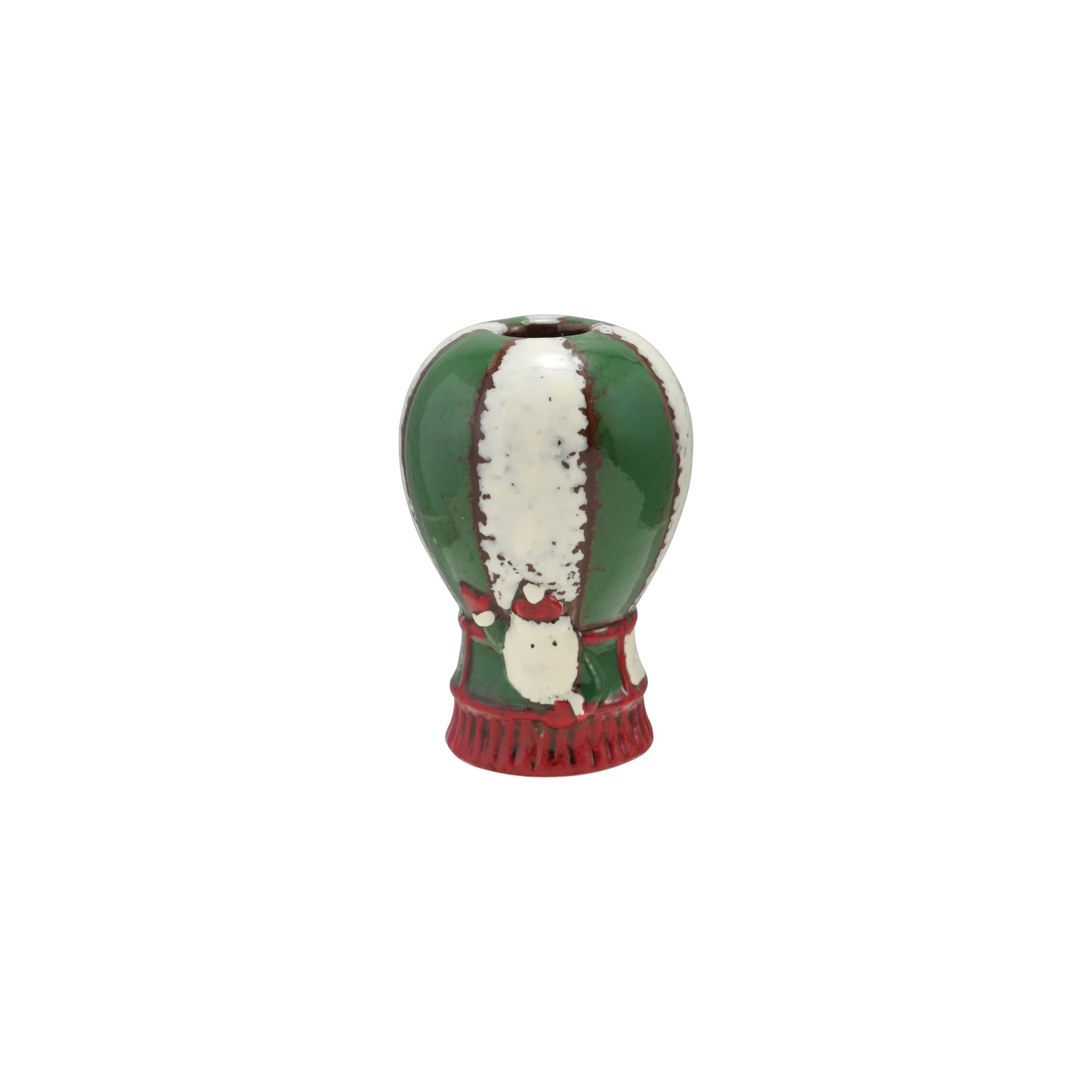 Catalog Name: 2-3/4" Round x 4"H Hand-Painted Ceramic Hot Air Balloon Shaped Taper Holder w/ Santa, Reactive Glaze, Green, White & Red (Each One Will Vary)