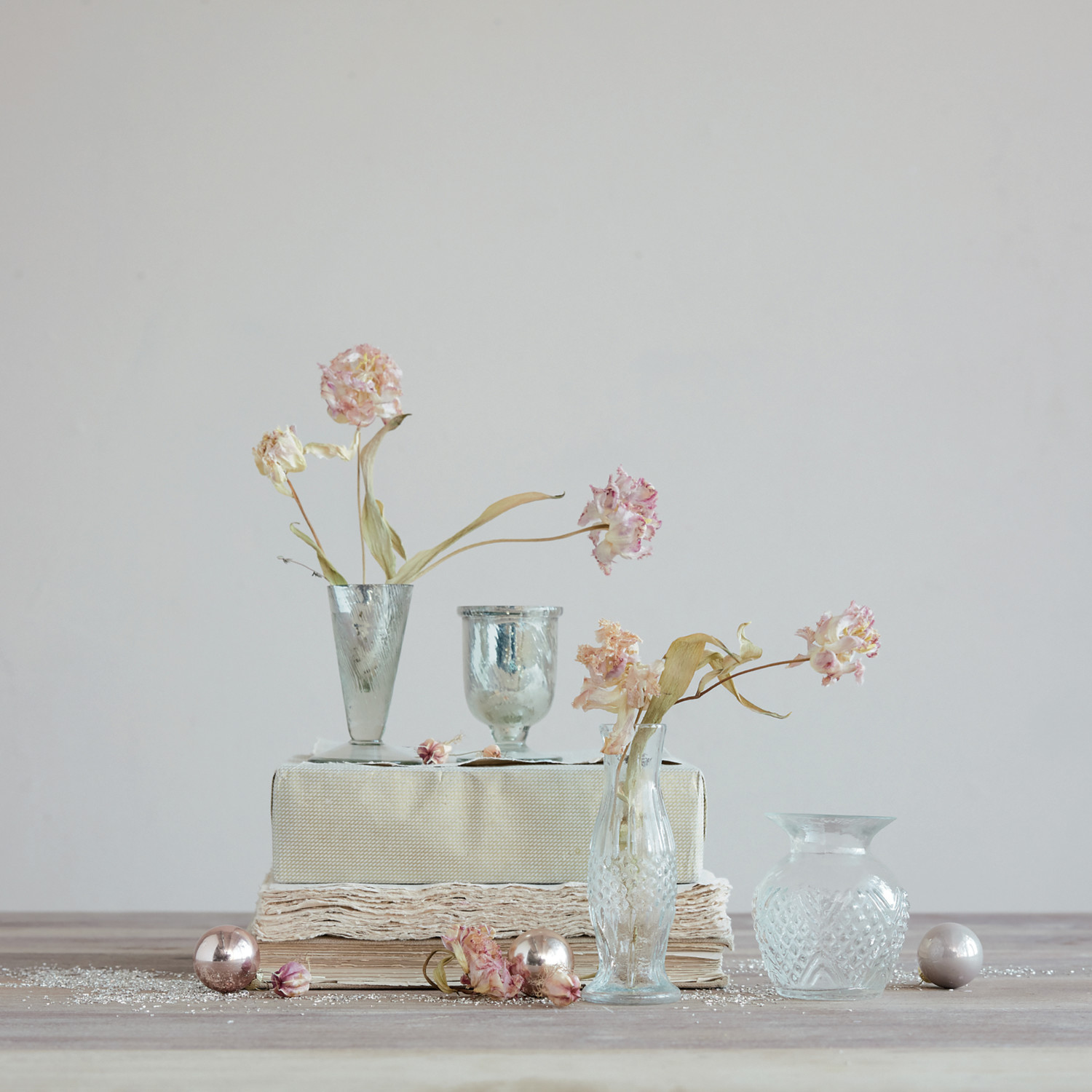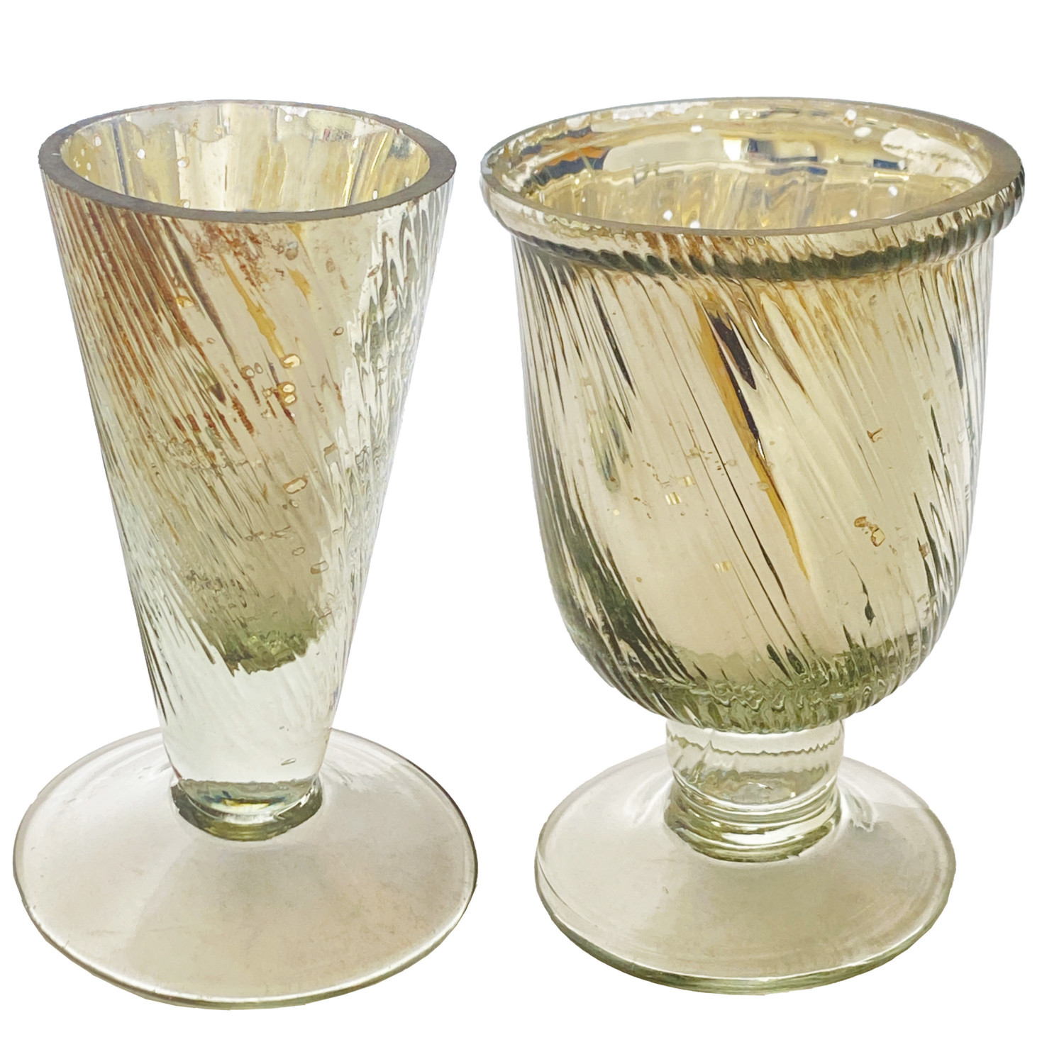 Catalog Name: 3-1/2"H - 4"H Mercury Glass Footed Vase, Antique Silver Finish, 2 Styles
