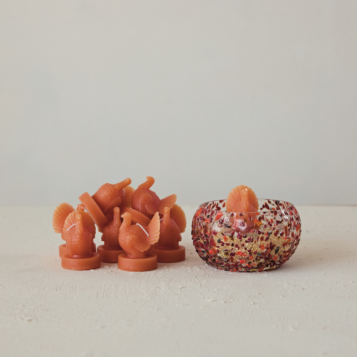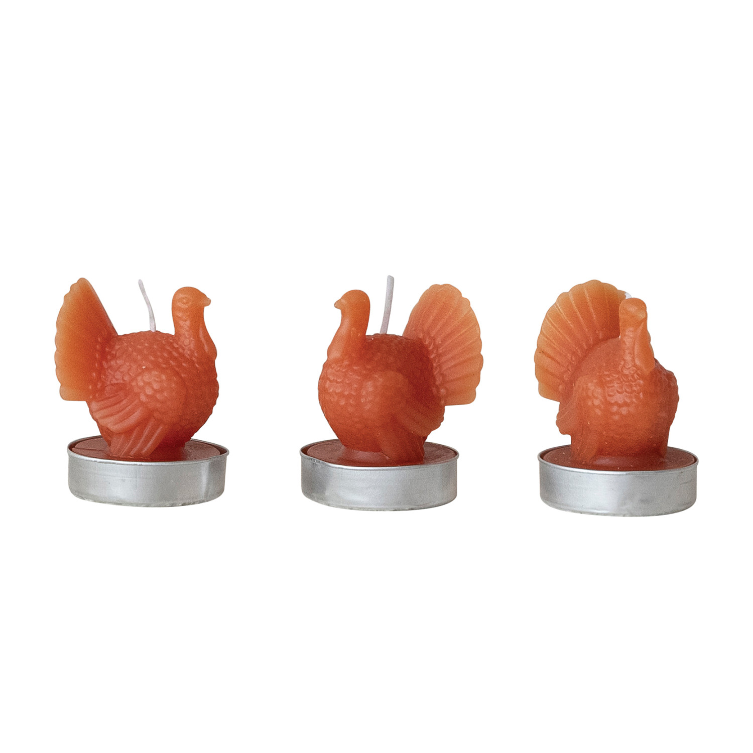 Unscented Turkey Shaped Tealights in Box, Orange Color, Set of 9