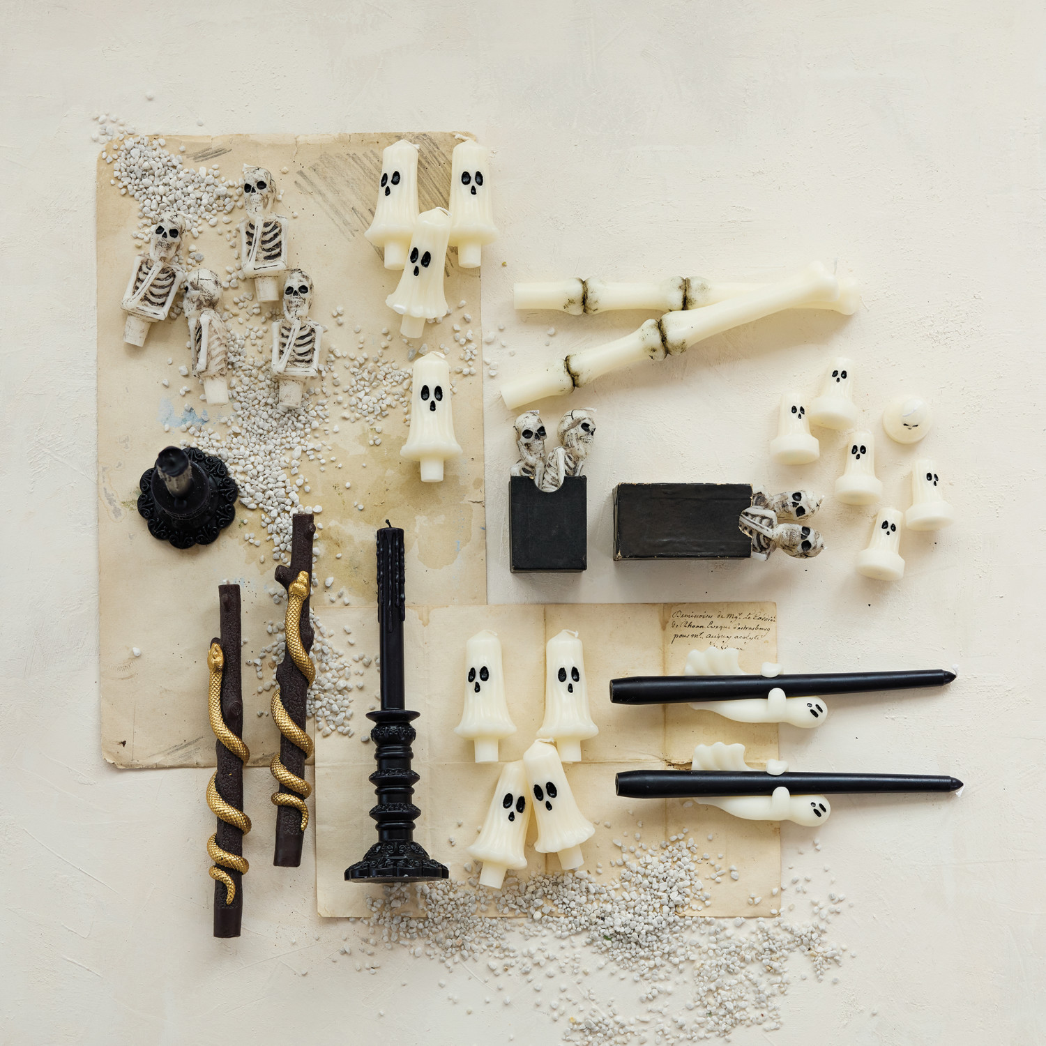 Catalog Name: 10"H Unscented Twig Shaped Taper Candles w/ Snake in Box, Black & Gold Color, Set of 2 (Est. Burn Time 7 Hours)