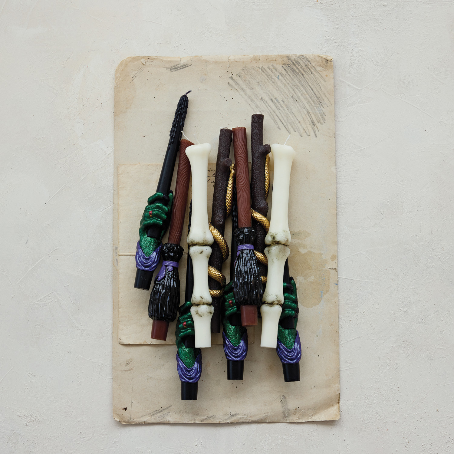 Catalog Name: 10"H Unscented Finger Bone Shaped Taper Candles in Box, White & Black, Set of 2 (Est. Burn Time 7 Hours)