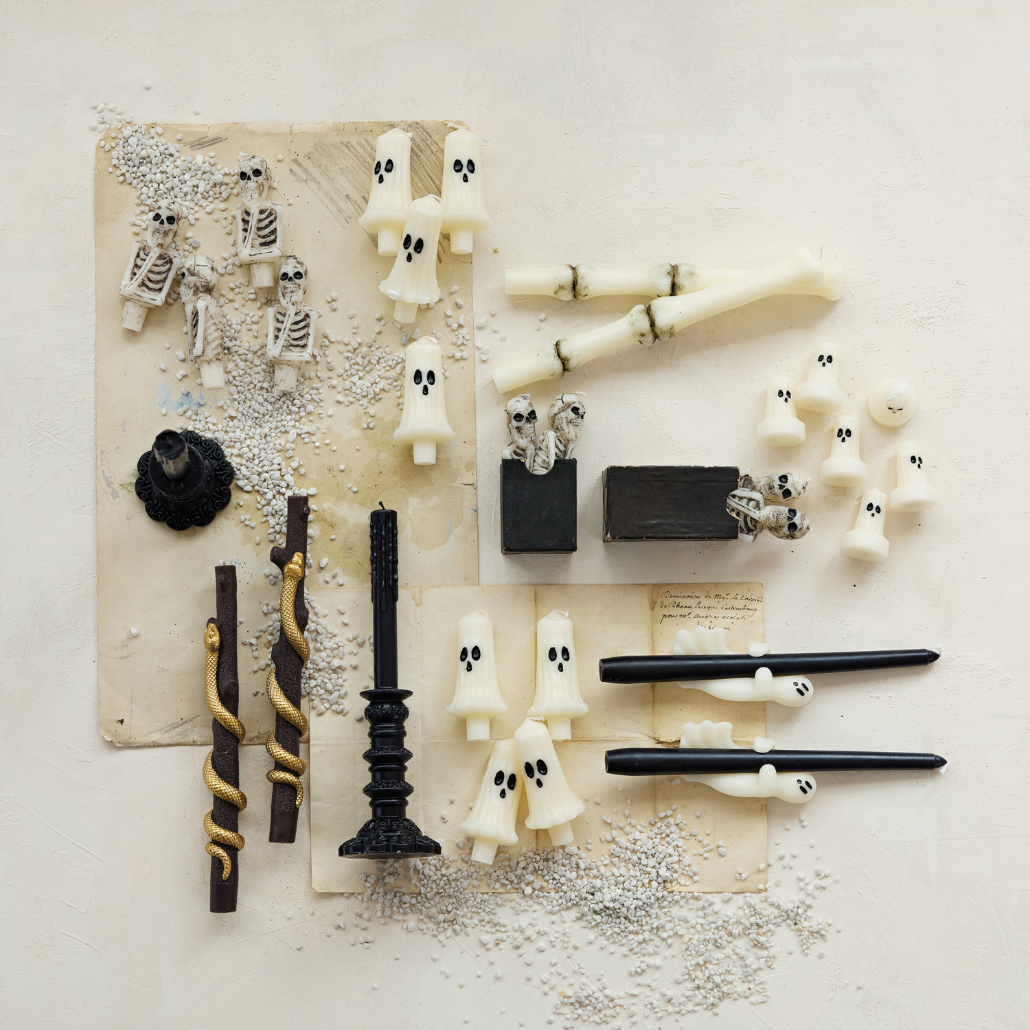 Unscented Ghost Shaped Bottle Taper Candles in Box, White & Black, Set of 4