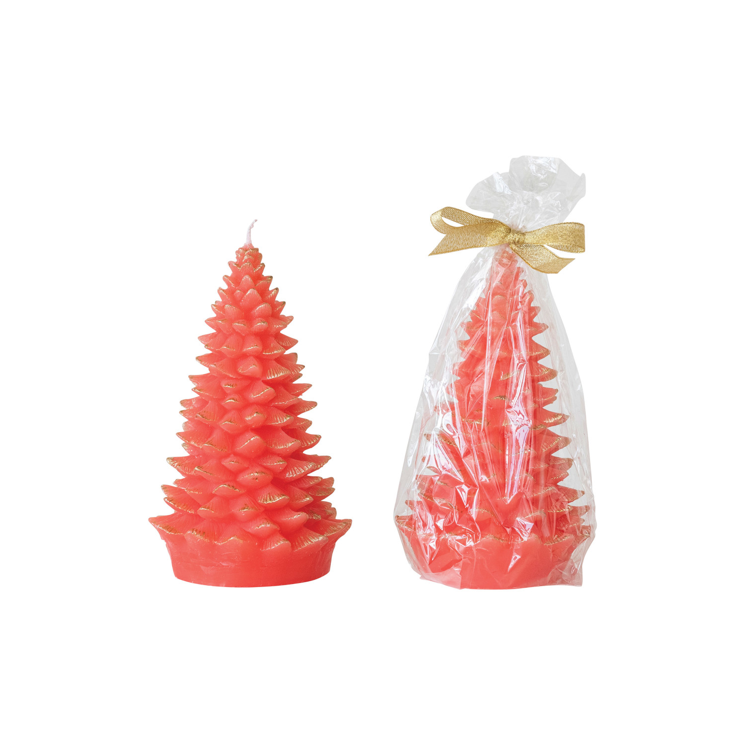 Catalog Name: 4" Round x 7"H Unscented Tree Shaped Candle w/ Gold Tips, Coral Color (Approximate Burn Time 36 Hours)