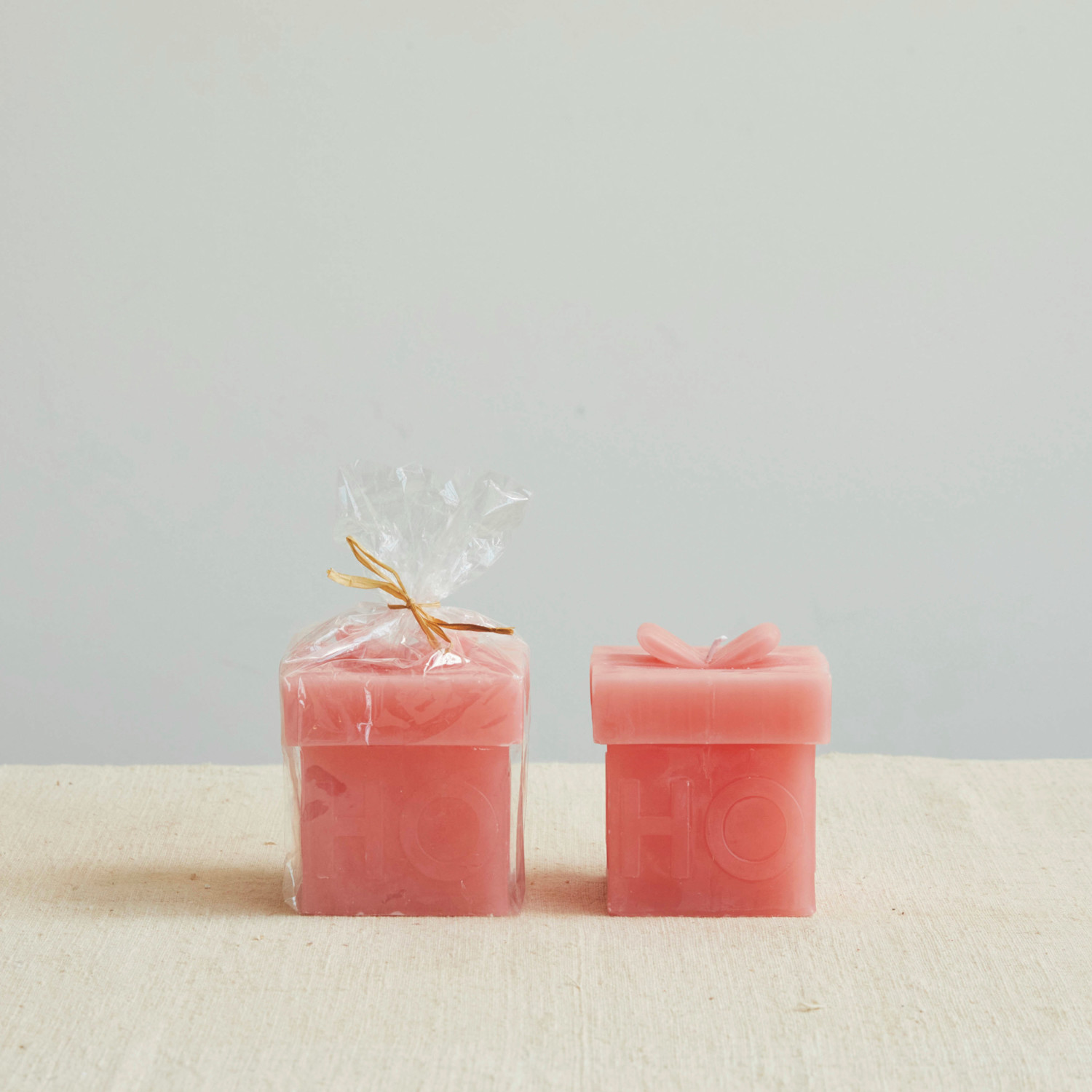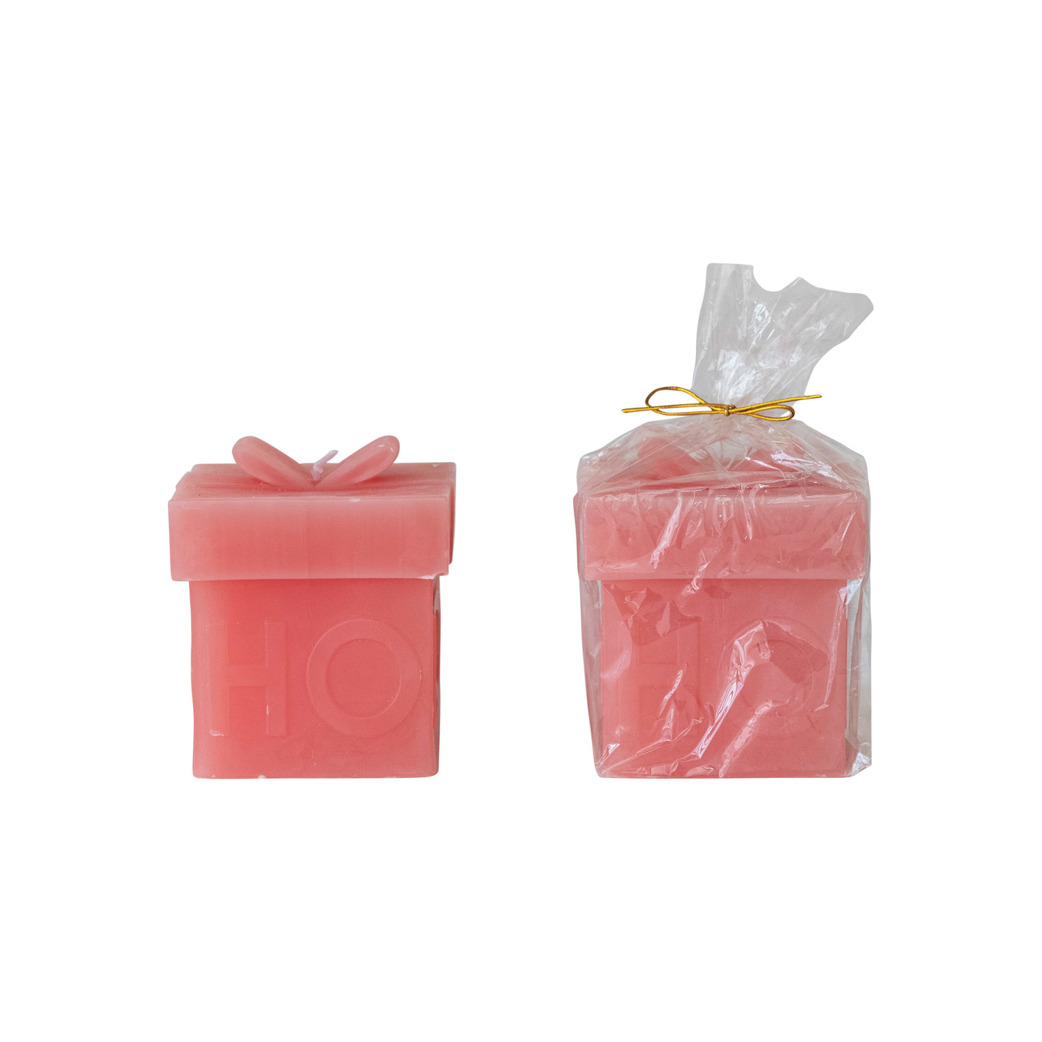 Unscented Gift Box Shaped Candle "Ho Ho Ho", Pink