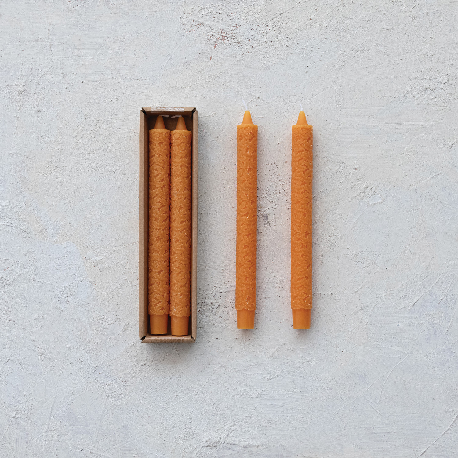 Unscented Maple Leaf Pattern Taper Candles in Box, Set of 2