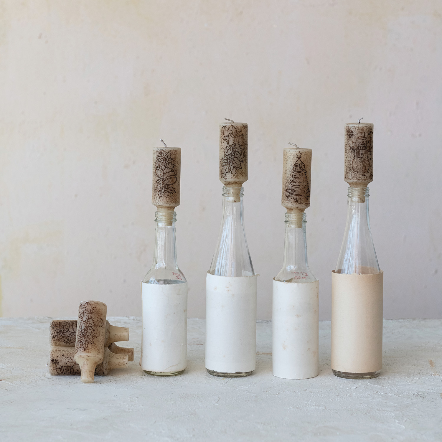 Unscented Bottle Taper Candles in Box with Design, Set of 4