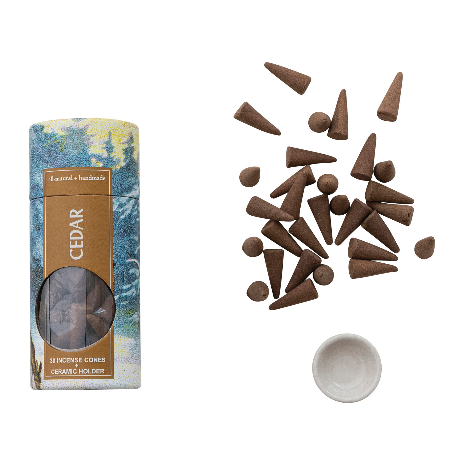 30 Piece All Natural Cedar Scented Incense Cones with Incense Holder, Set of 31