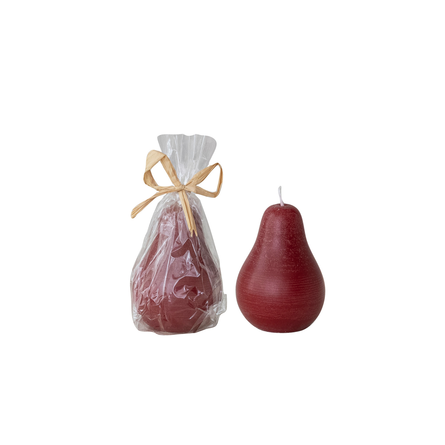 Unscented Pear Shaped Candle in Cello Bag with Raffia Tie, Red (Est. Burn Time 14 Hours)