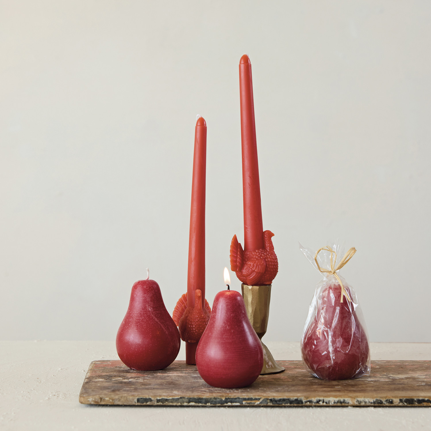 Catalog Name: 2-1/2" Round x 3-1/2"H Unscented Pear Shaped Candle in Cello Bag w/ Raffia Tie, Red (Est. Burn Time 14 Hours)