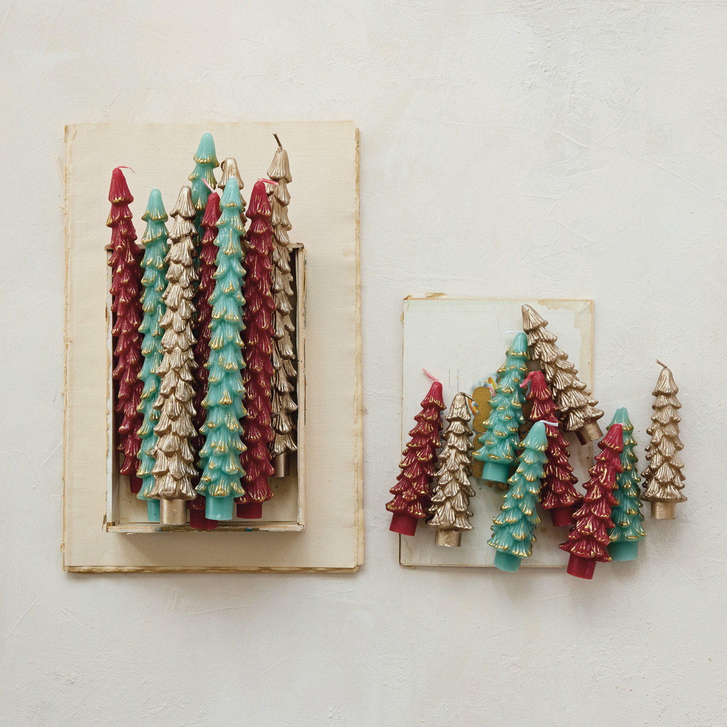 Unscented Tree Shaped Taper Candles in Box, Champagne Color, Set of 2