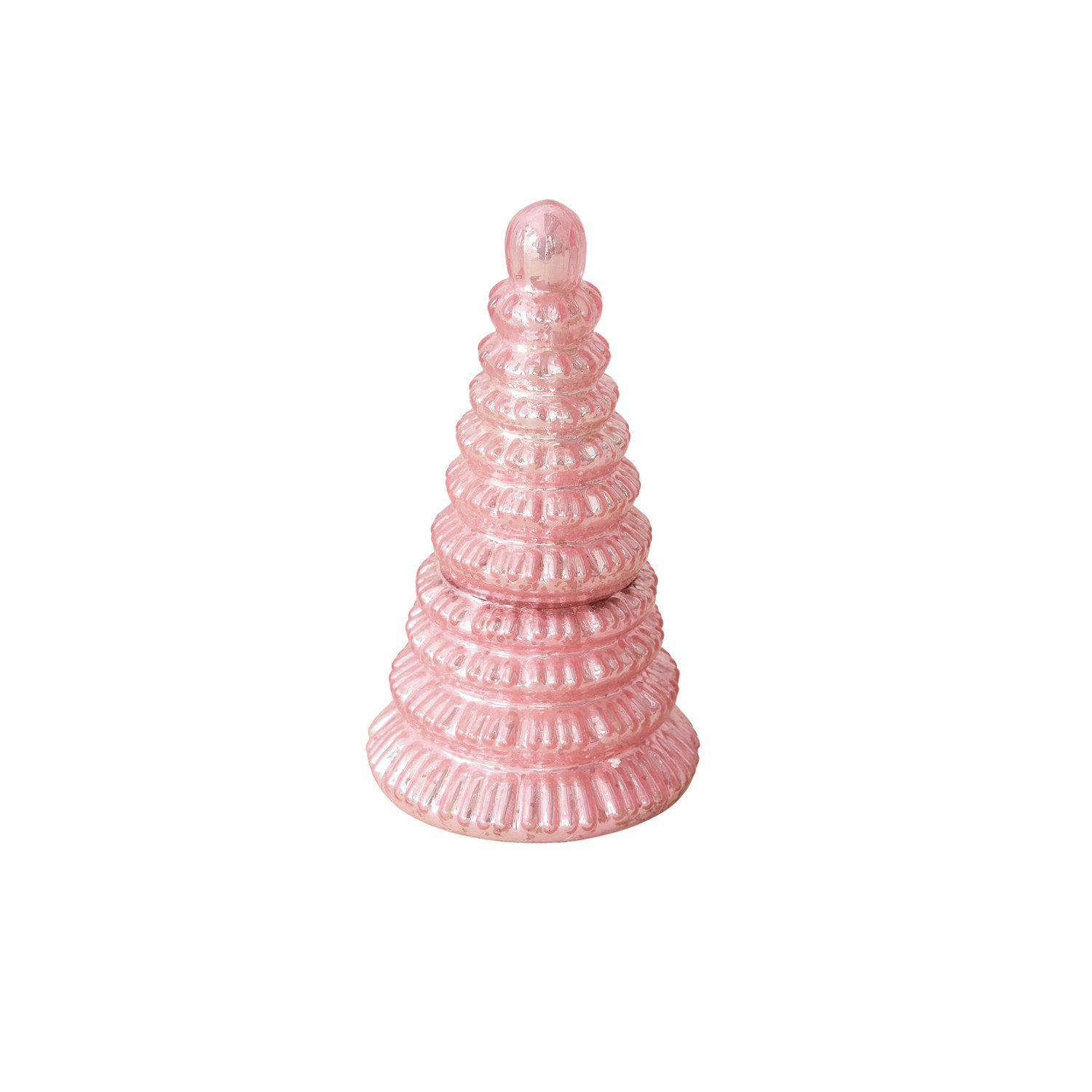 Catalog Name: 5" Round x 9"H 14.3 oz. Embossed Mercury Glass Winter Berry Scented Tree Jar Candle w/ Lid, Pink