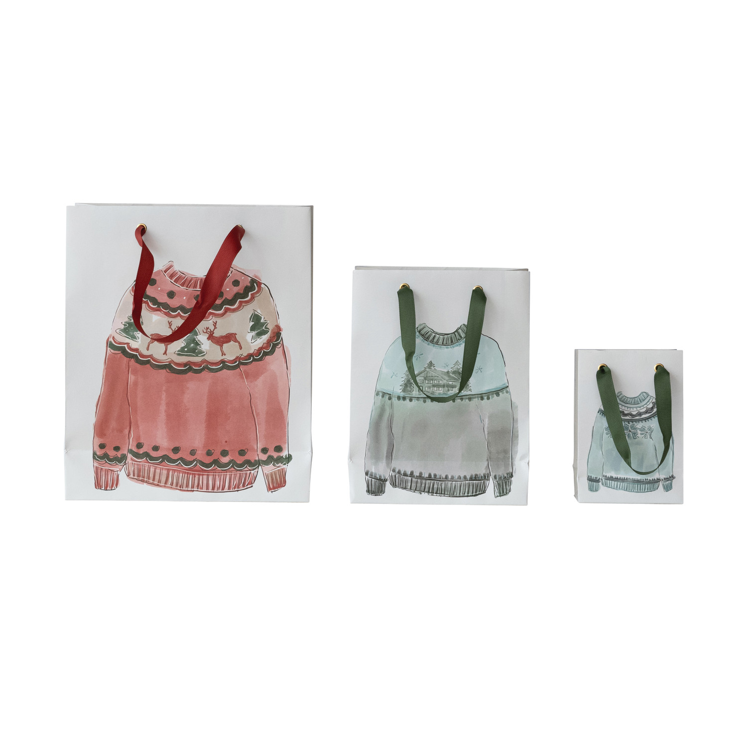 Catalog Name: Handmade Printed Recycled Paper Gift Bags w/ Sweater Image, Multi Color, Set of 3 ©