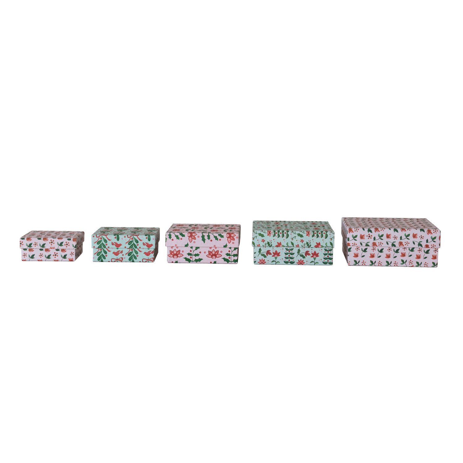 Handmade Printed Recycled Paper Gift Boxes with Botanical Patterns, Set of 5 ©