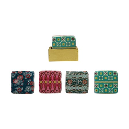 Catalog Name: 9-1/2" Square x 4"H, 8-1/2" Square x 3-1/2"H, 7-1/2" Square x 3-1/4"H, 6-1/2" Square x 3"H & 5-3/4" Square x 2-1/2"H Handmade Printed Recycled Paper Gift Boxes w/ Botanical Patterns, Multi Color, Set of 5 ©
