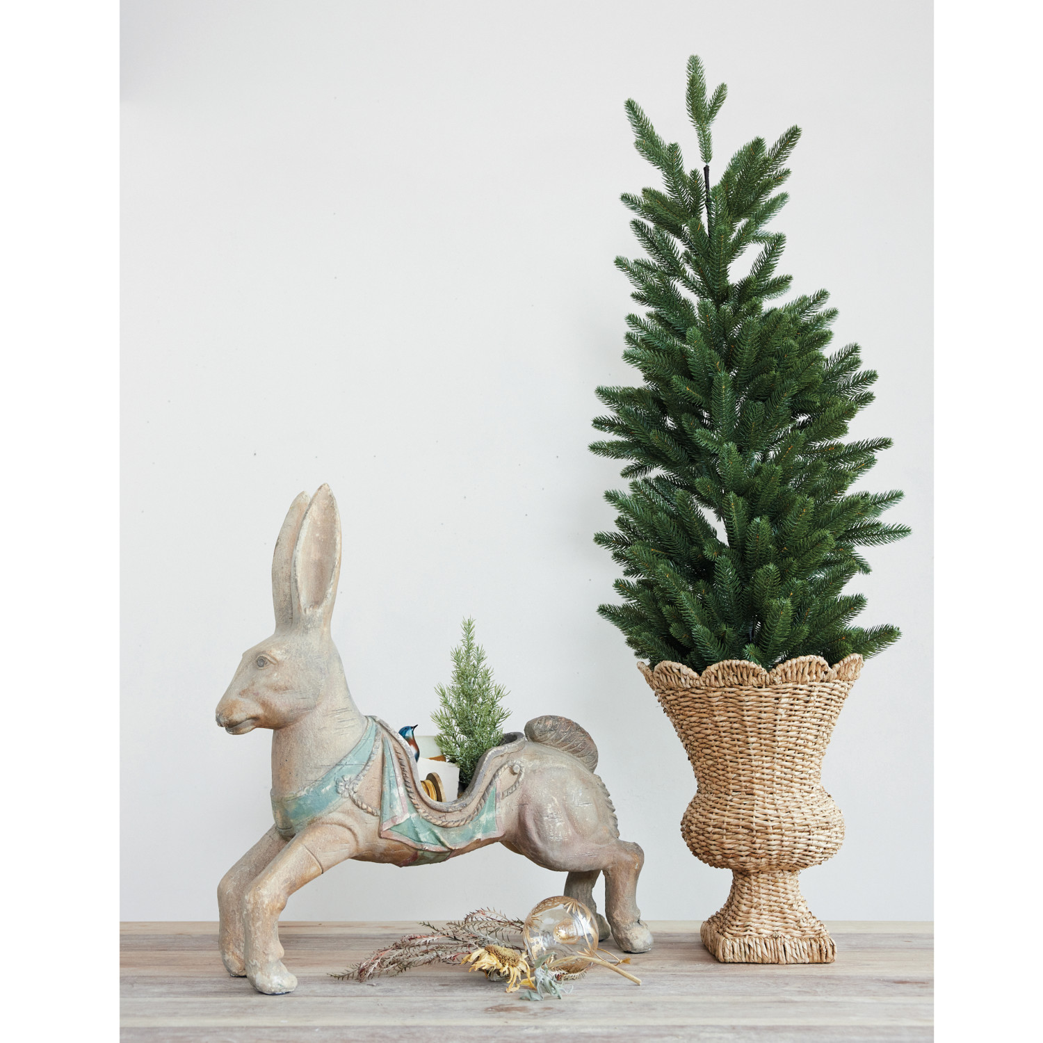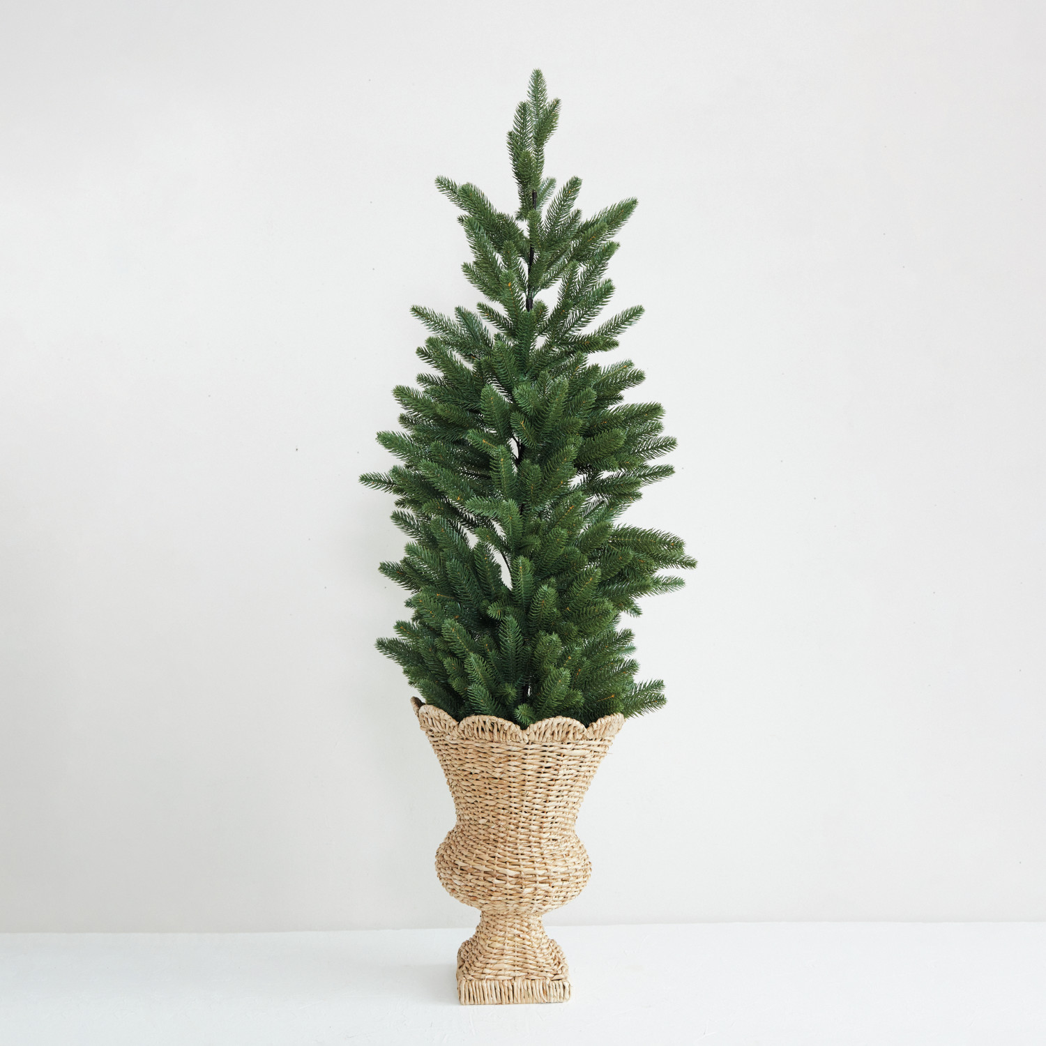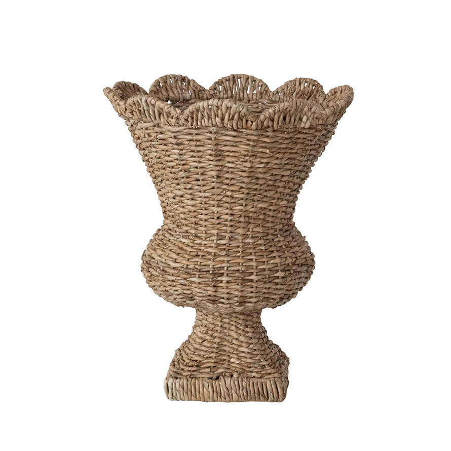 Hand-Woven Rattan Scalloped Urn, Natural