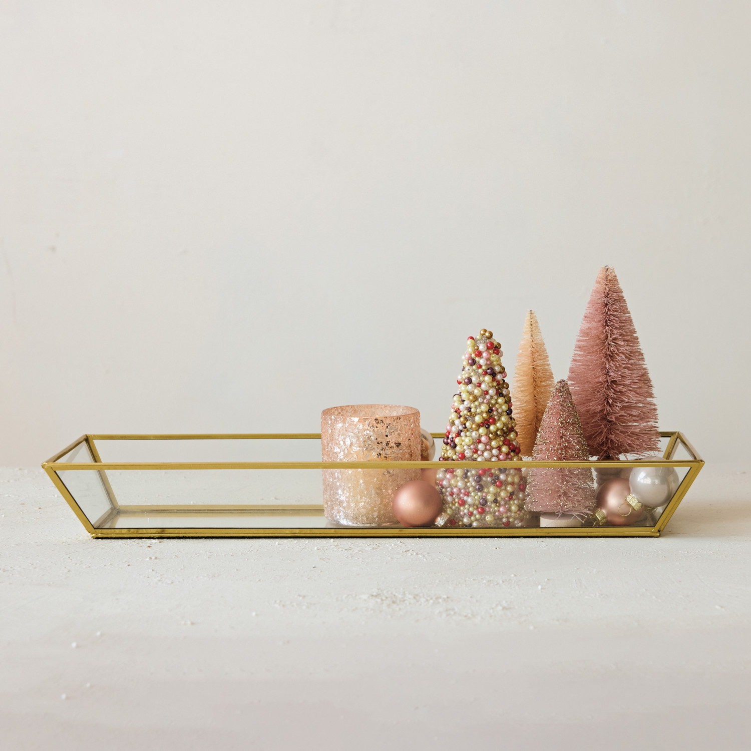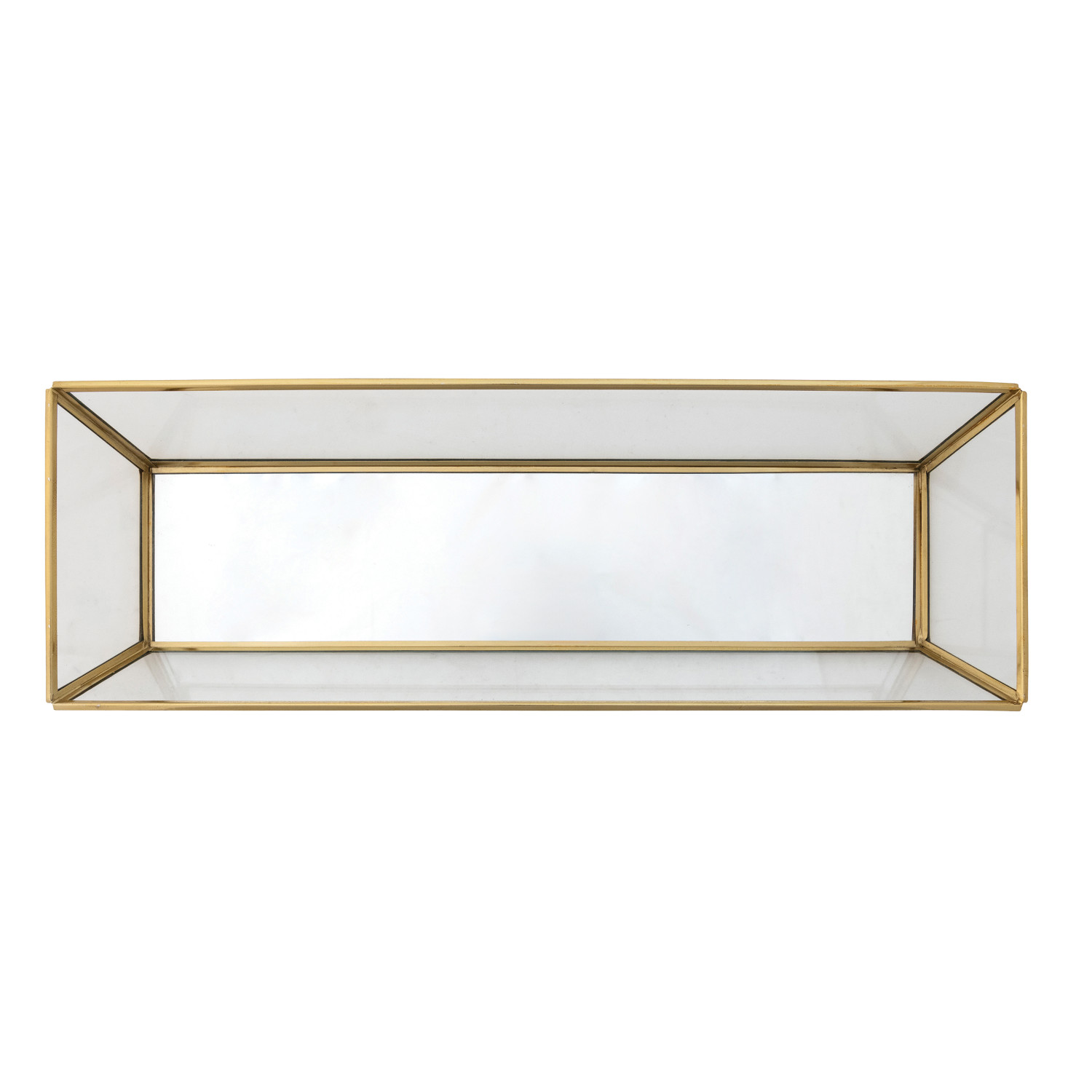 Catalog Name: 17-1/2"L x 6"W x 2-1/4"H Decorative Handmade Mirrored Glass & Brass Tray, Gold Finish